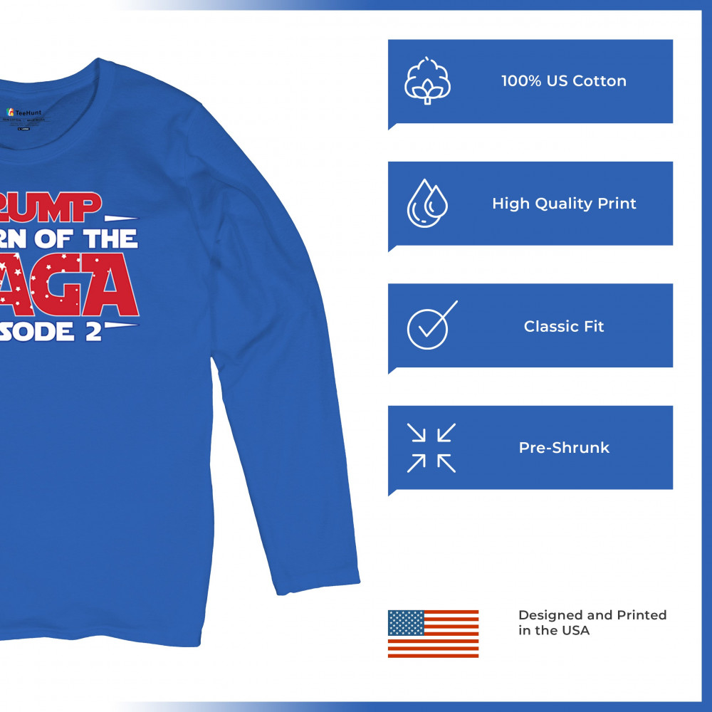 Join the "Return of the MAGA: Episode 2" movement. Celebrate Donald J. Trump, the Red Wave, and America First values with this bold design.