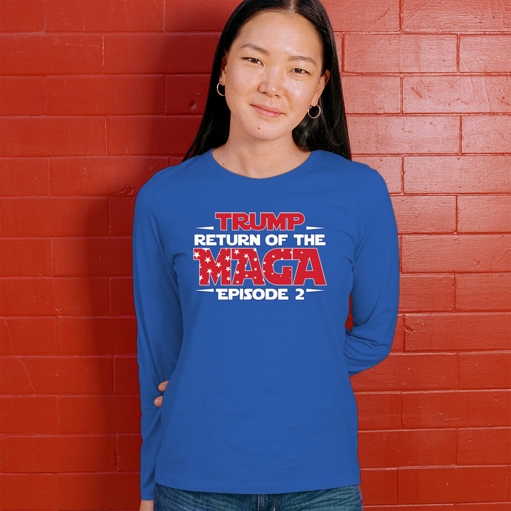 Make a bold statement with the "Return of the MAGA: Episode 2" design, celebrating Donald J. Trump and the Red Wave movement. Perfect for conservatives, Trump supporters, and Republicans who champion America First values, freedom, and the fight for a better future. A must-have for those who never surrender and stand for the people's mandate.
