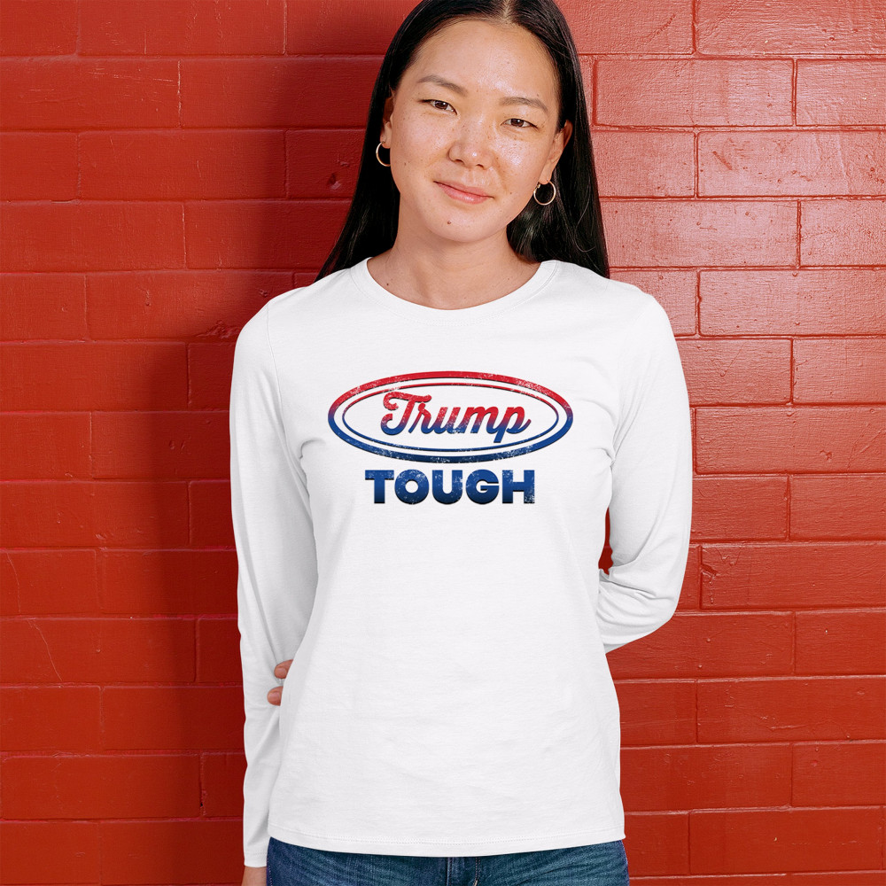Embrace the "Trump Tough" spirit—show your support for conservative values, America first, and the American flag. Perfect for rallies or daily wear.