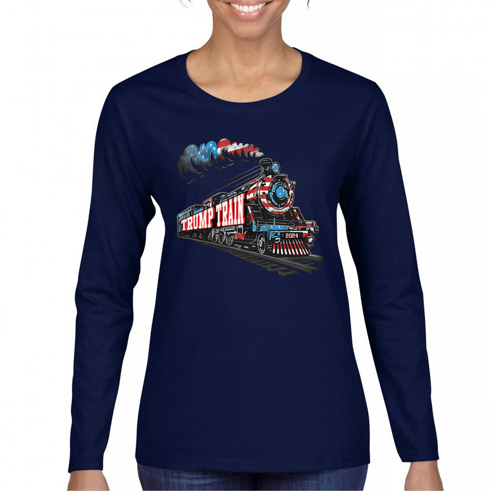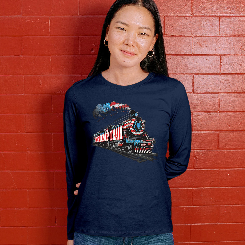 Hop on the Trump Train and support America First! This bold, patriotic tee is perfect for Republicans, conservatives, and the Red Wave movement.