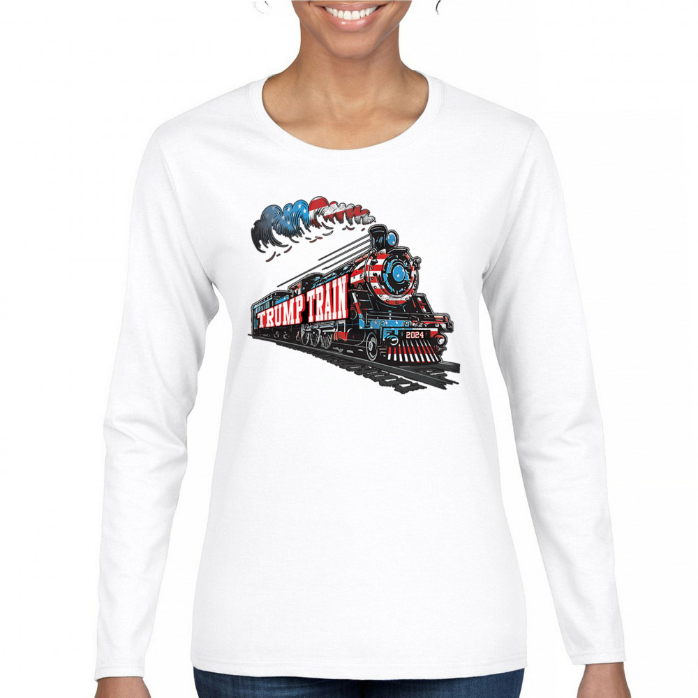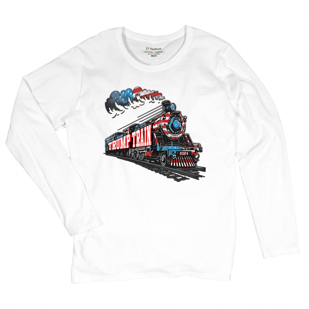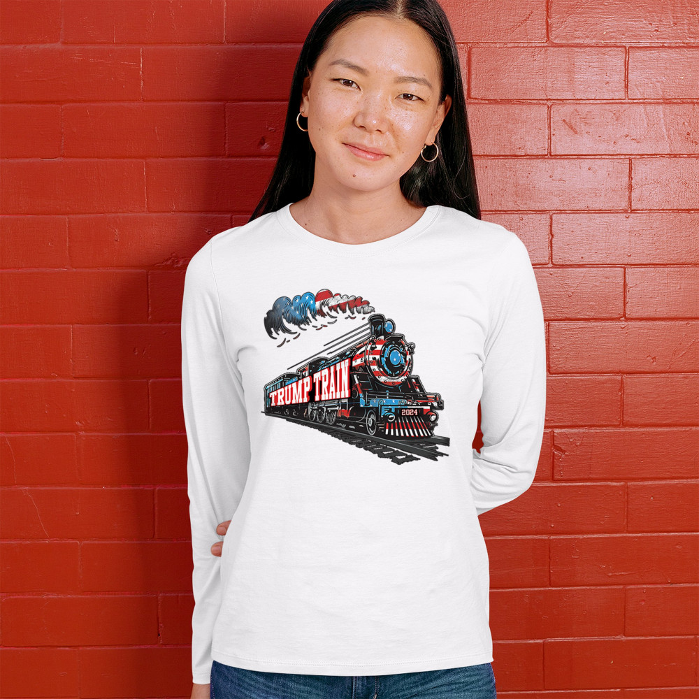 Hop on the Trump Train and support America First! This bold, patriotic tee is perfect for Republicans, conservatives, and the Red Wave movement.