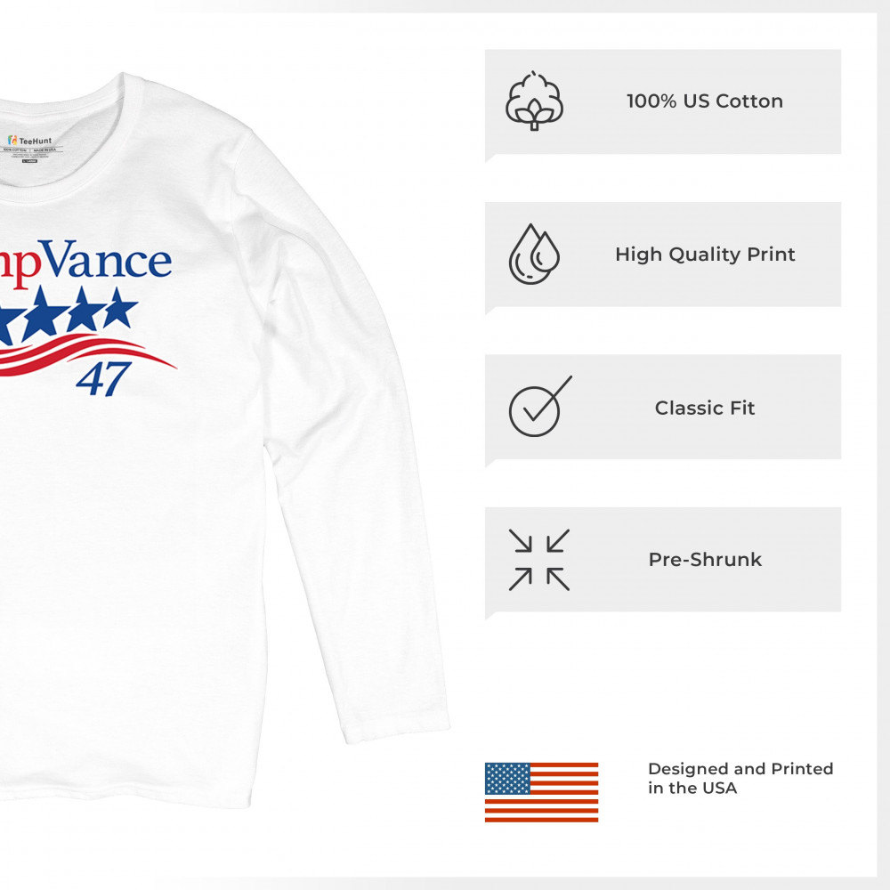 Patriotic "Trump Vance 47" design celebrating America First, conservative values, and the Red Wave, supporting Donald J. Trump as the 47th President.