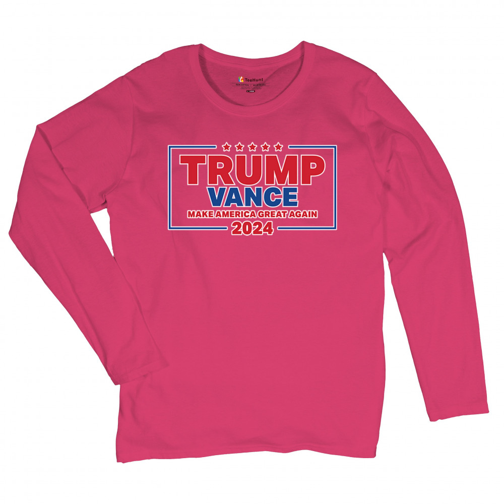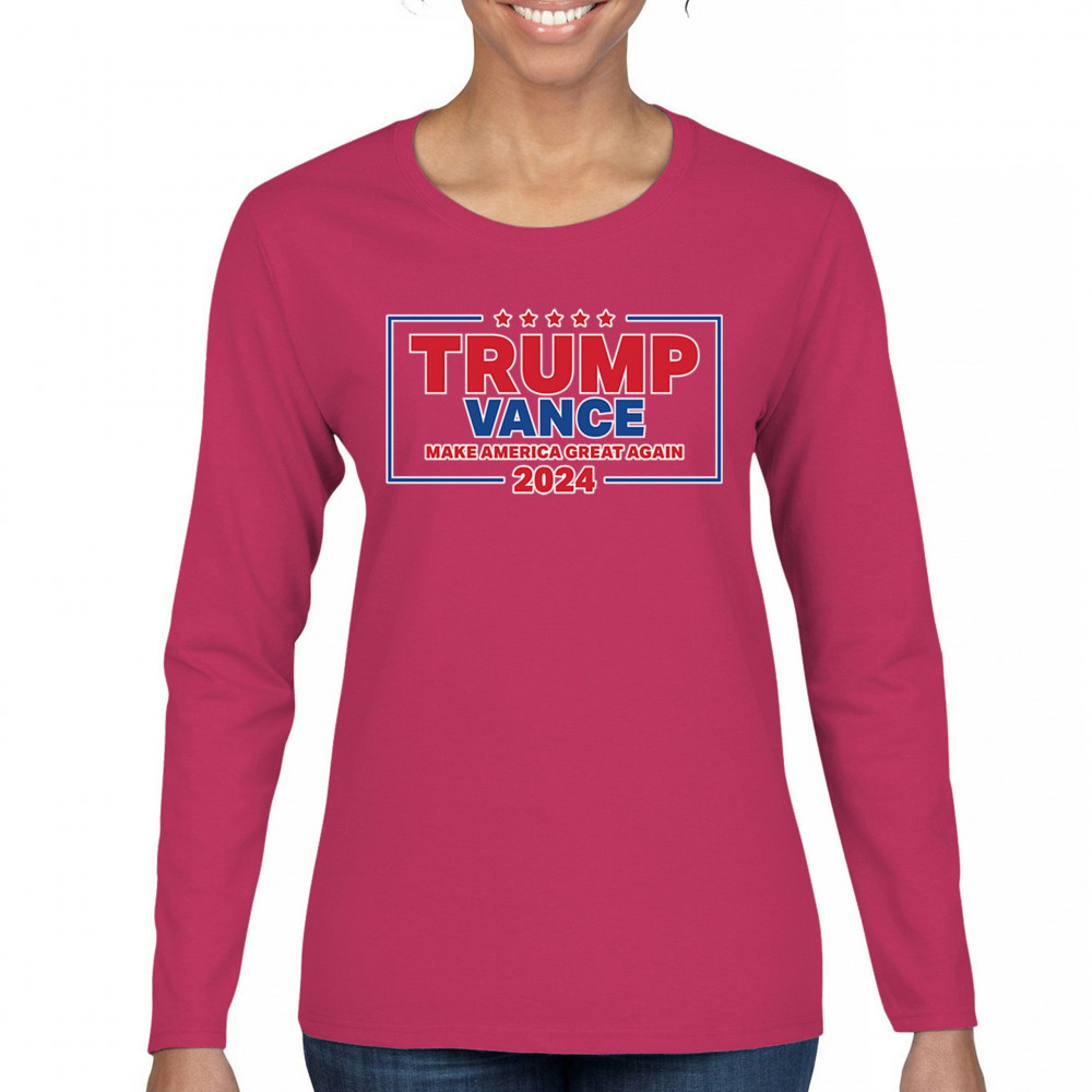 Show your support for Trump-Vance 2024 with this patriotic design featuring the American flag and bold slogan. Perfect for rallies and conservative events.