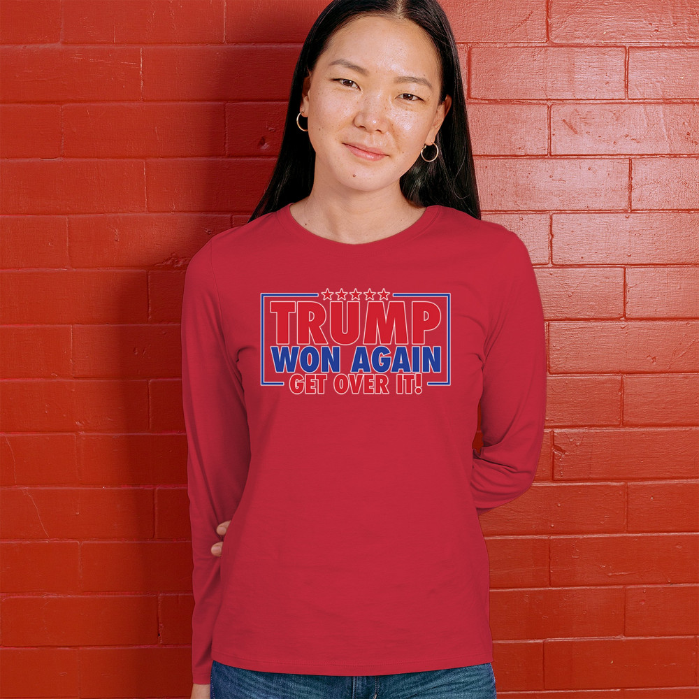 Express your Republican pride with our bold "Trump Won Again" design, celebrating America First, the 47th President, and the Red Wave movement. This unique piece showcases your unwavering support for conservative values and the people's mandate. Perfect for patriots, this statement piece reflects your belief in never surrendering and standing strong for America.