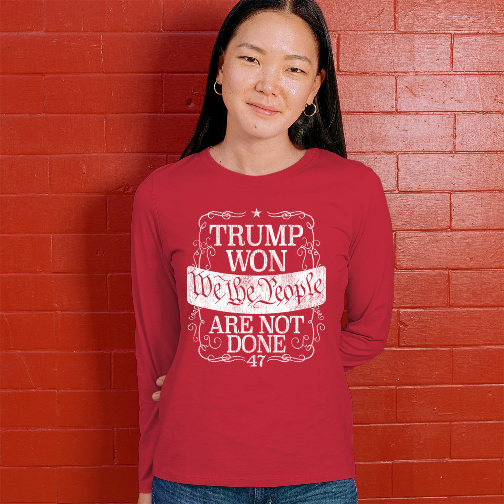 Trump Won design celebrating conservative victory, "We the People," and unity. Perfect for patriots and Republican supporters of the Red Wave.