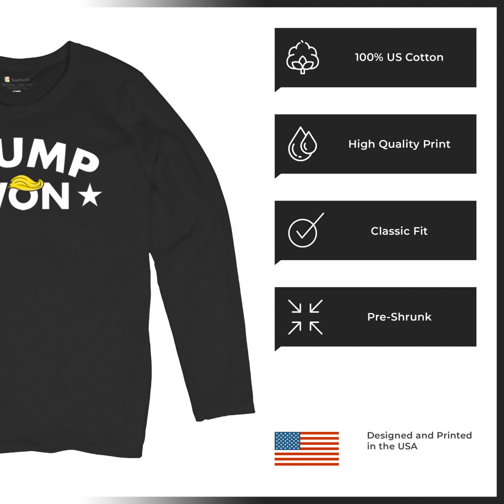 The "Trump Won" design boldly represents the spirit of victory, resilience, and unwavering support for America First principles. Ideal for patriots, Republicans, and supporters of Donald J. Trump, this statement graphic captures the momentum of the Red Wave and the people's mandate. Make your voice heard and show your dedication to the fight for freedom with this iconic design.