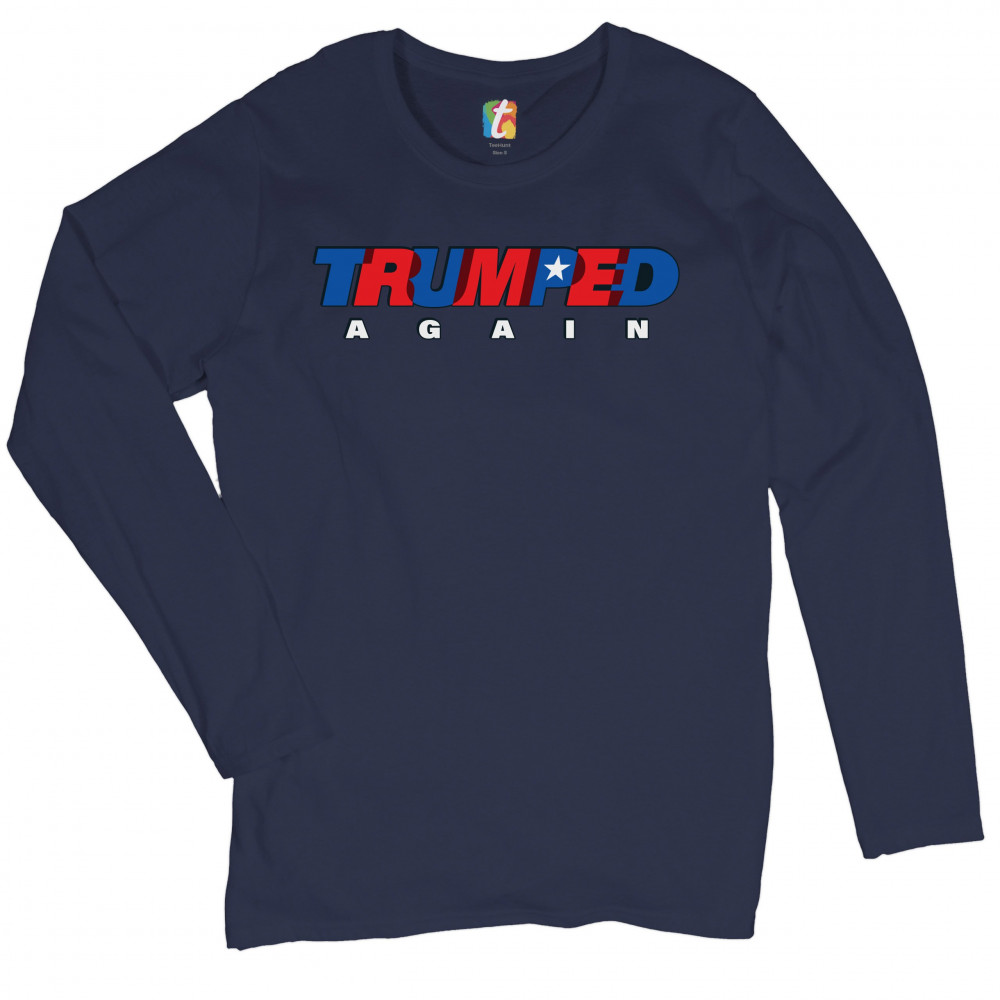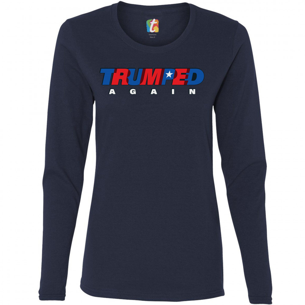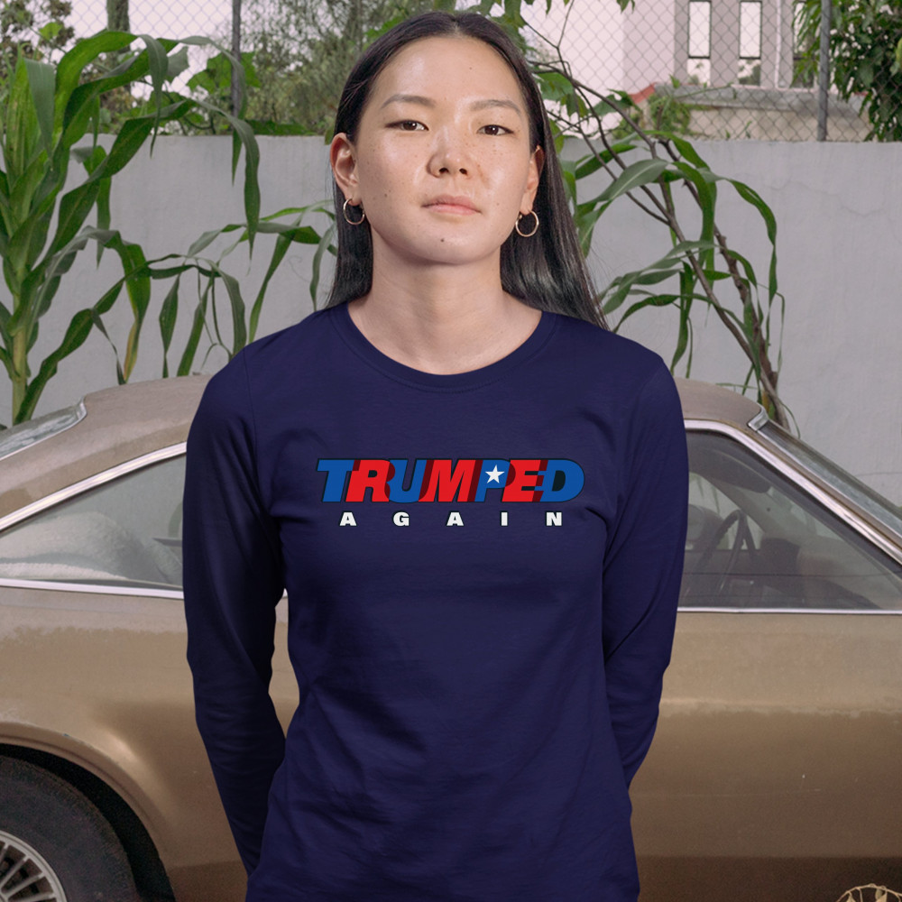 TRUMPED AGAIN women's long sleeve t-shirt donald trump 2024 keep america great navy blue