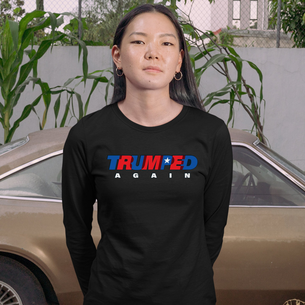 TRUMPED AGAIN women's long sleeve t-shirt donald trump 2024 keep america great black