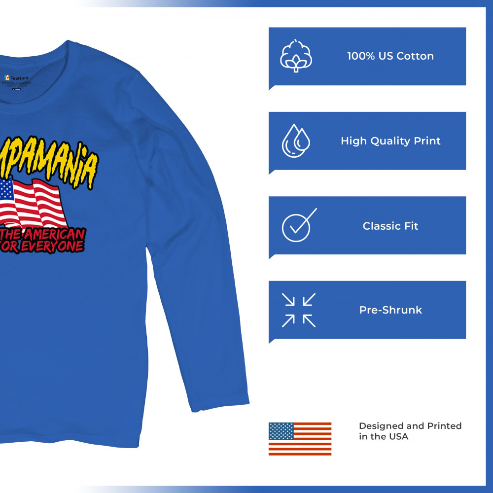 Show your patriotic pride with the "Trumpamania" design. Perfect for rallies, it embodies conservatism, trust in God, and the fight for America.