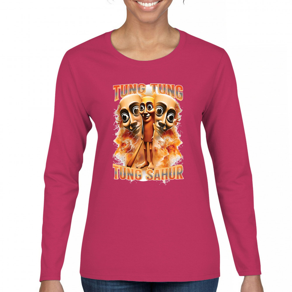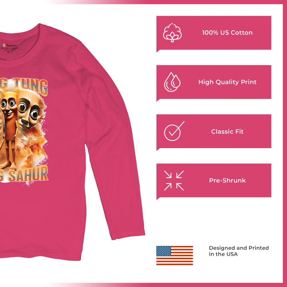 Brace yourself for pure meme insanity with the Tung Tung Tung Sahur shirt—a cursed-core fever dream built from TikTok chaos and Gen Z humor. This design blends internet meme culture, ironic fashion, brainrot visuals, and Gen Alpha absurdity. Perfect for those who wear memes, laugh at chaos, and live for viral trends.