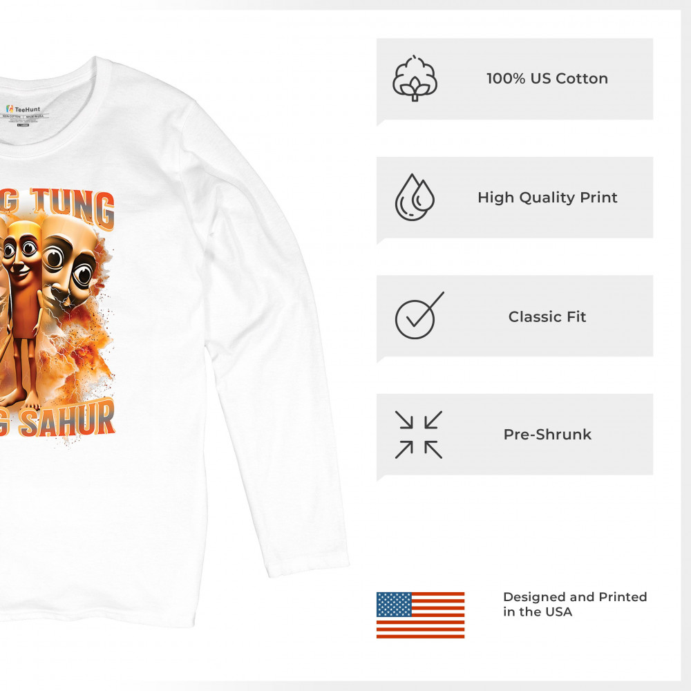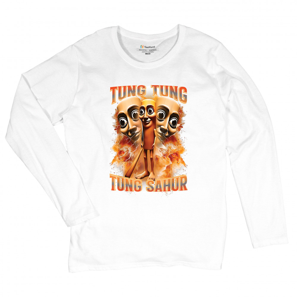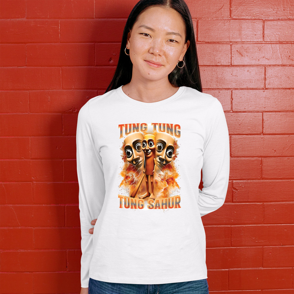 Brace yourself for pure meme insanity with the Tung Tung Tung Sahur shirt—a cursed-core fever dream built from TikTok chaos and Gen Z humor. This design blends internet meme culture, ironic fashion, brainrot visuals, and Gen Alpha absurdity. Perfect for those who wear memes, laugh at chaos, and live for viral trends.