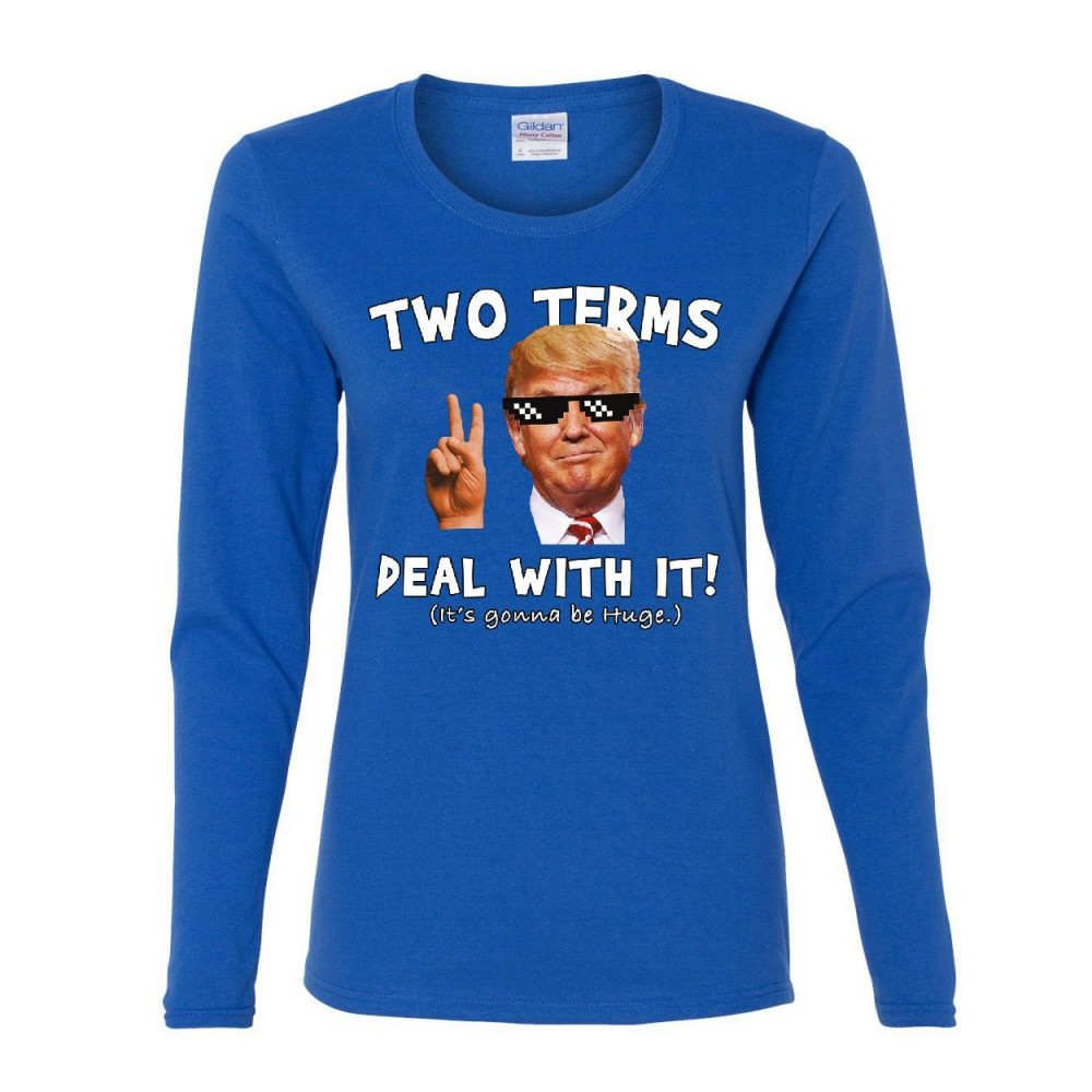 TWO TERMS DEAL WITH IT women's long sleeve tee donald trump troll meme maga 2020 royal blue