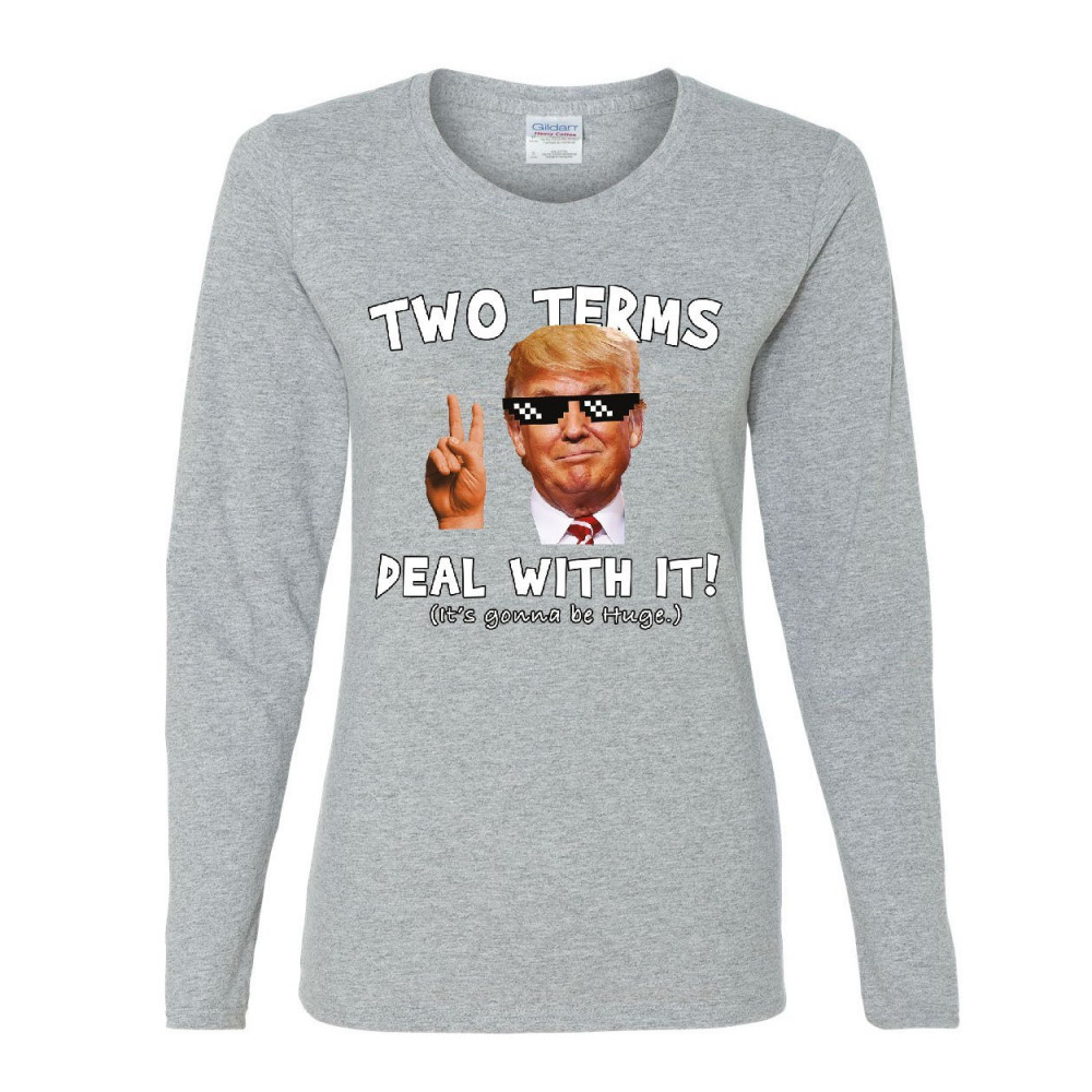 TWO TERMS DEAL WITH IT women's long sleeve tee donald trump troll meme maga 2020 gray
