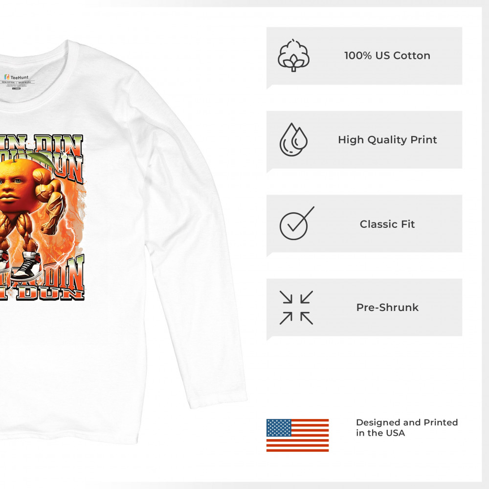 Meet U Din Din Din Din Dun Ma Din Din Din Dun—a jacked-up citrus monstrosity marching straight out of brainrot hell. This design fuses cursed fruit humor, muscle-core absurdity, weirdcore meme style, and TikTok chaos into one deranged fashion statement. Built for meme heads, gym rats with irony, and Gen Z absurdists.