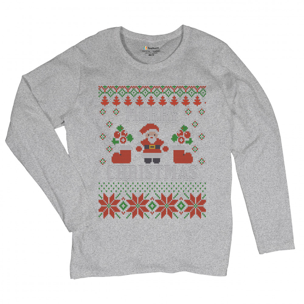 UGLY SWEATER SANTA CLAUS women's long sleeve t-shirt let it snow christmas xmas gray