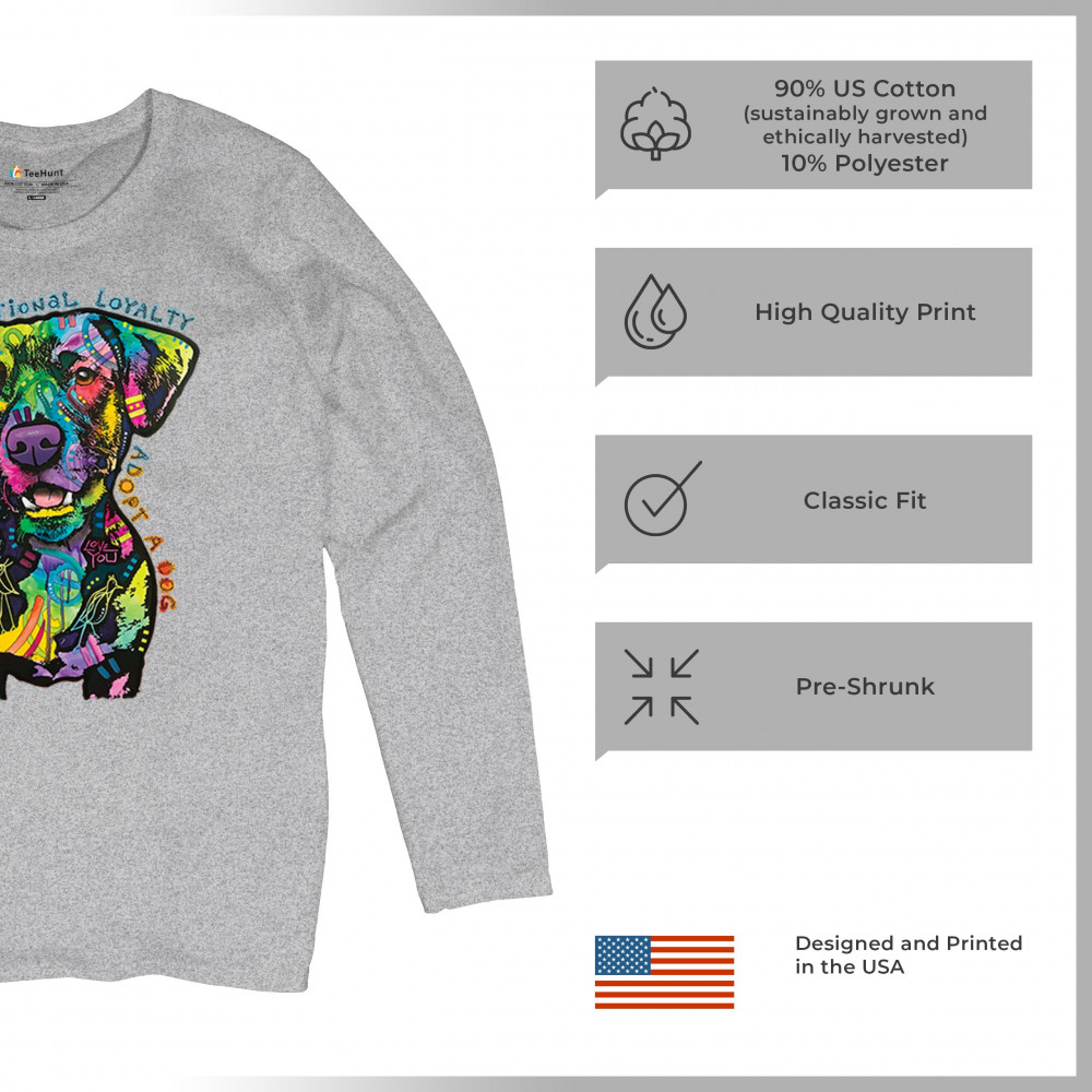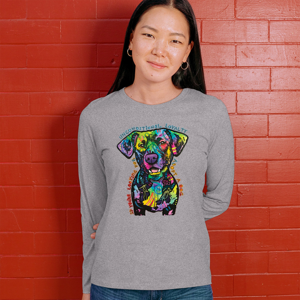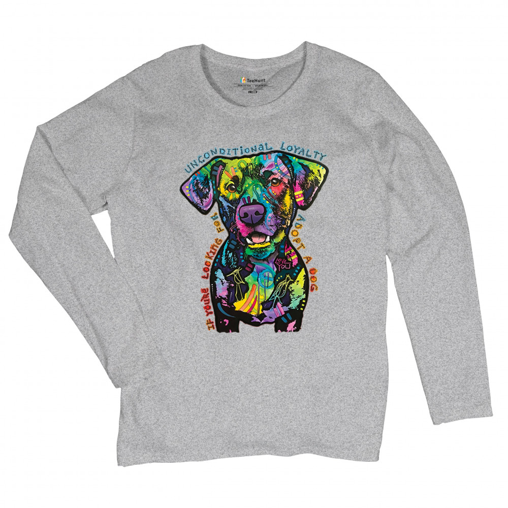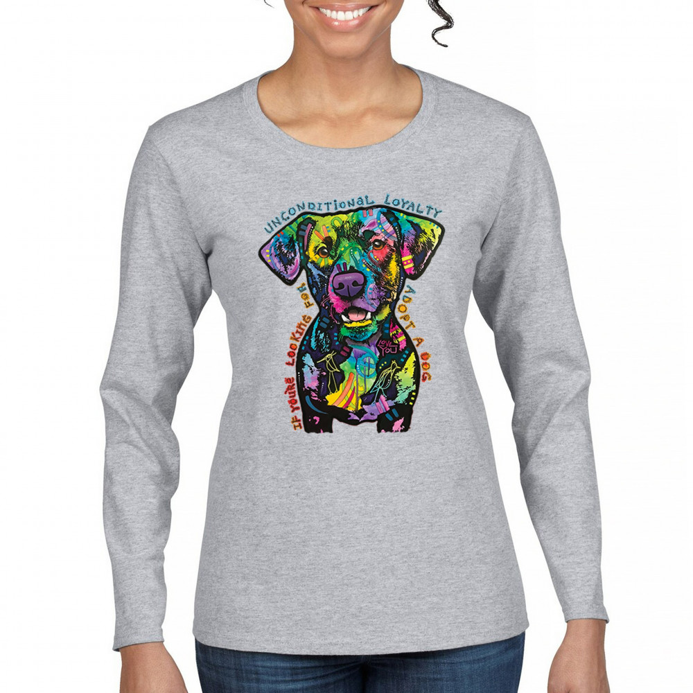 UNCONDITIONAL LOYALTY women's long sleeve t-shirt adopt a dog dean russo pets gray