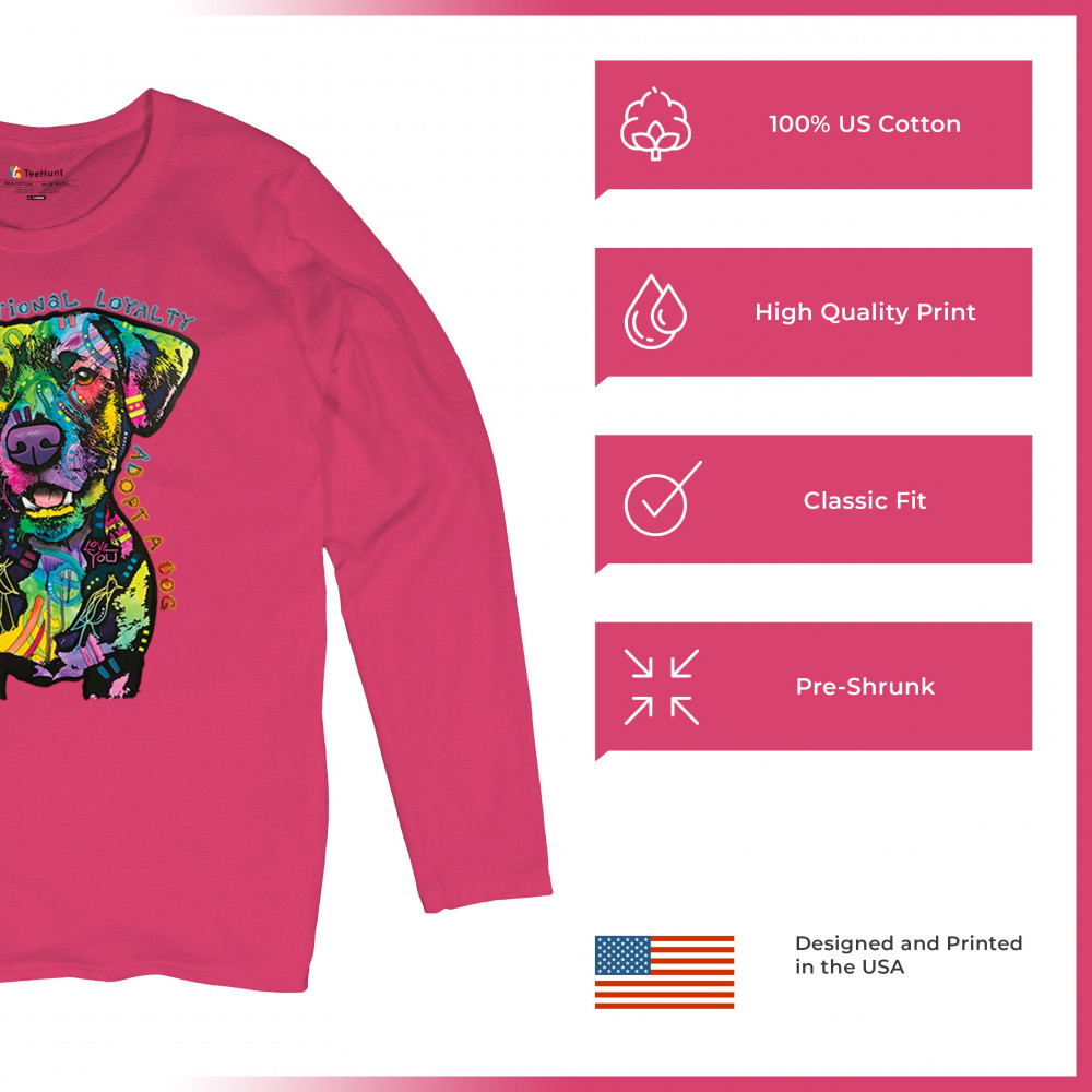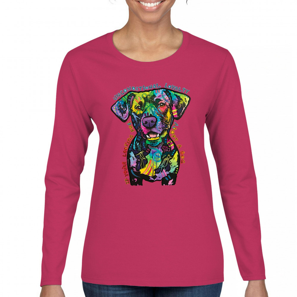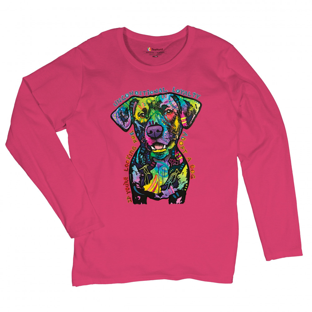 UNCONDITIONAL LOYALTY women's long sleeve t-shirt adopt a dog dean russo pets pink