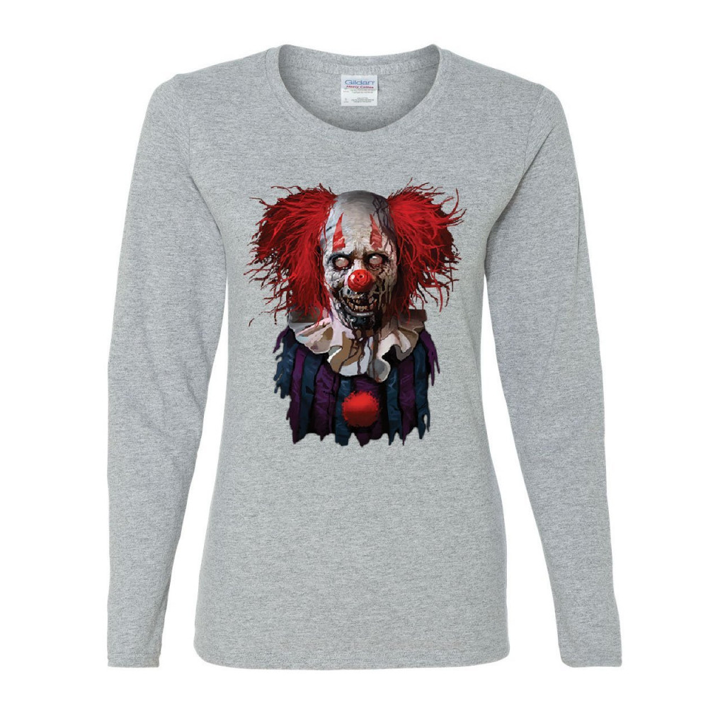 UNDEAD ZOMBIE CLOWN women's long sleeve tee scary creepy horror nightmare fobia gray