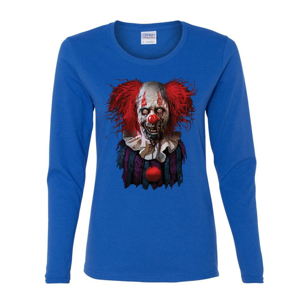UNDEAD ZOMBIE CLOWN women's long sleeve tee scary creepy horror nightmare fobia royal blue