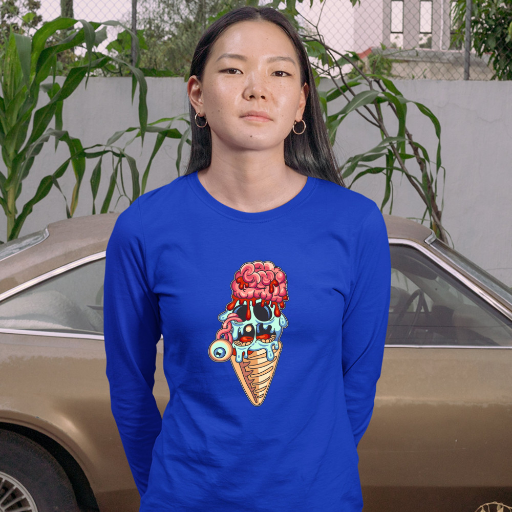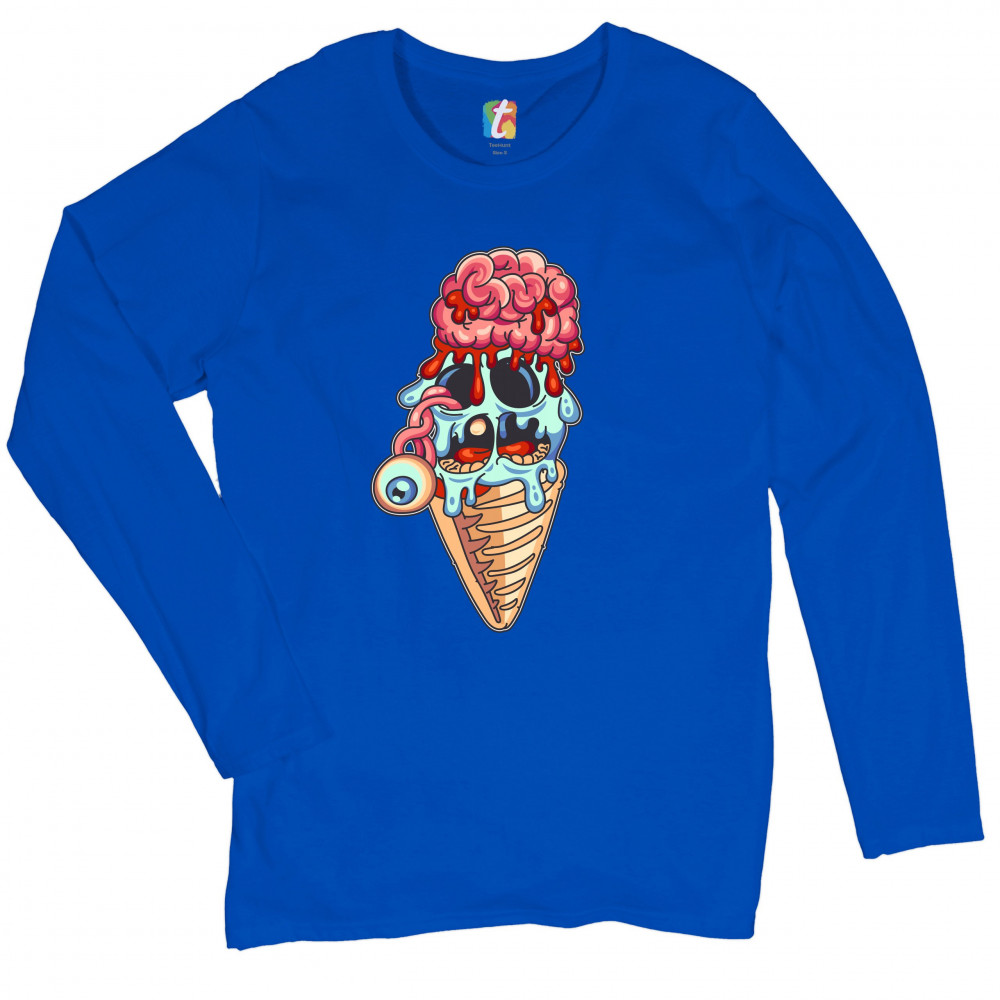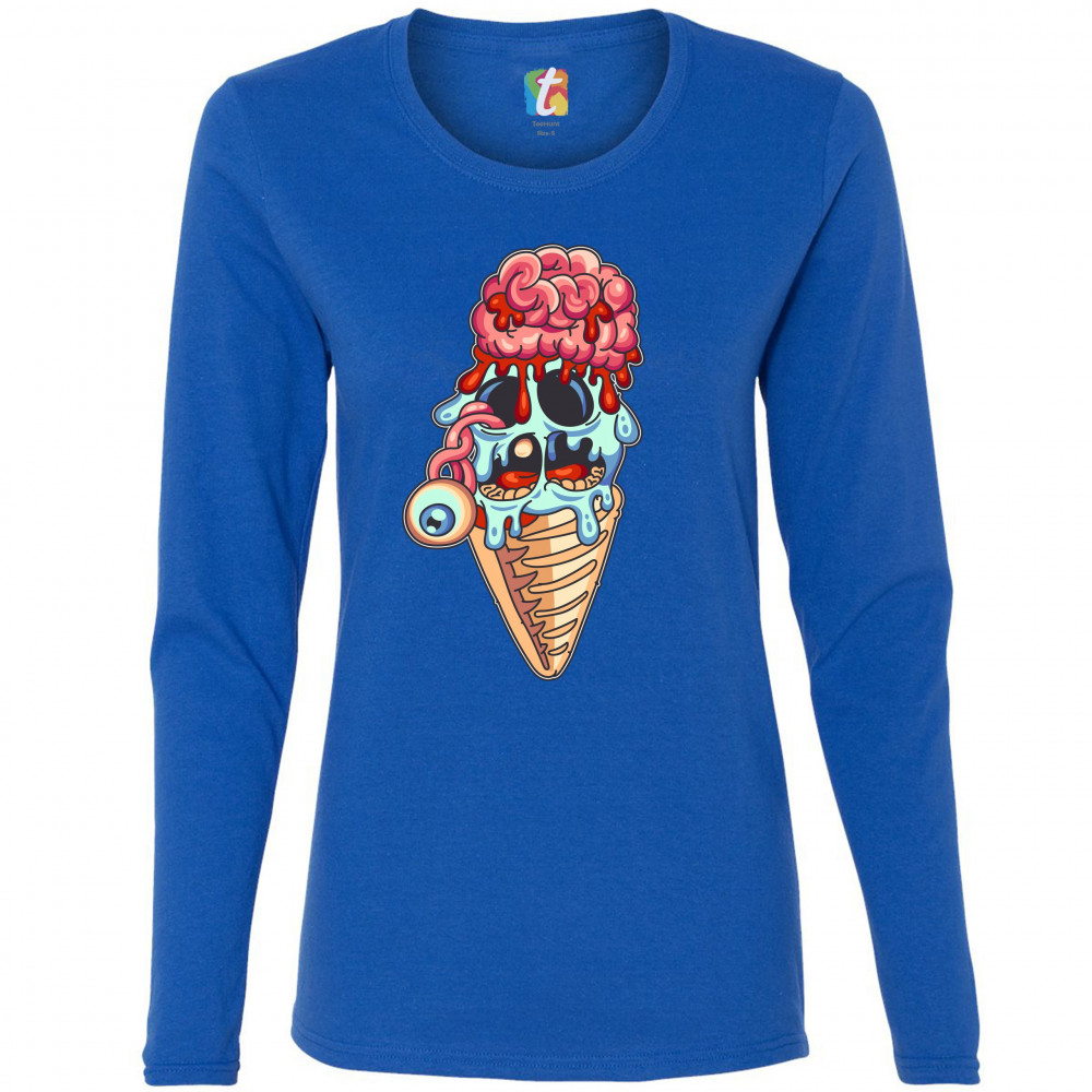 UNDEAD ZOMBIE ICE CREAM women's long sleeve t-shirt happy halloween eat brains royal blue