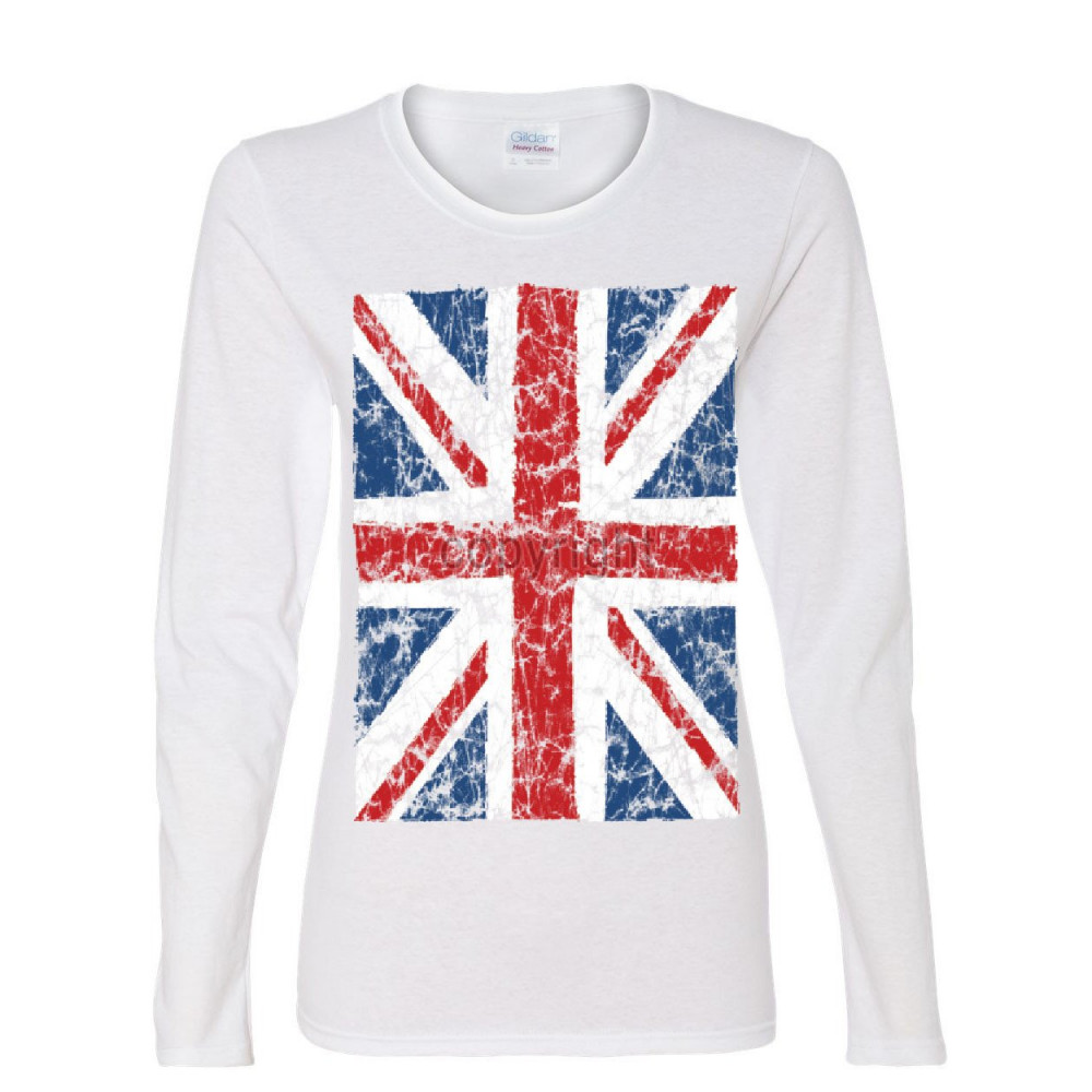 UNION JACK long sleeve t-shirt united kingdom distressed british flag white