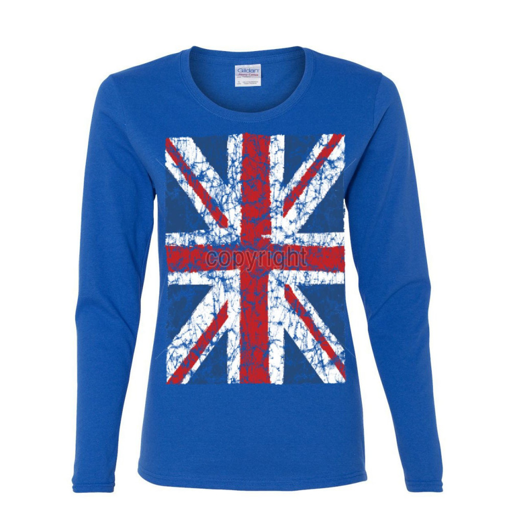 UNION JACK long sleeve t-shirt united kingdom distressed british flag royal blue