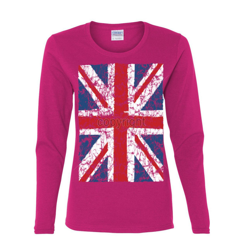 UNION JACK long sleeve t-shirt united kingdom distressed british flag pink