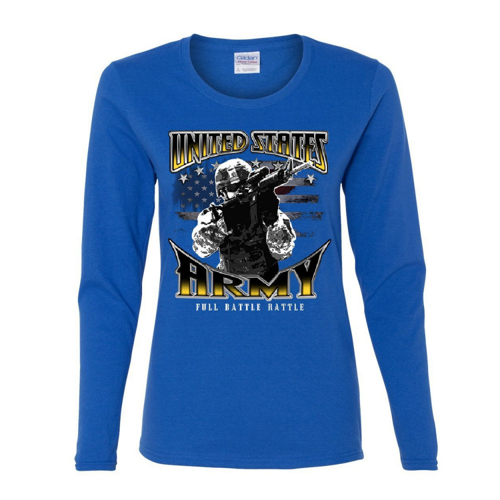 UNITED STATES ARMY FULL BATTLE RATTLE united states army women's long sleeve tee american soldier full battle rattle royal blue