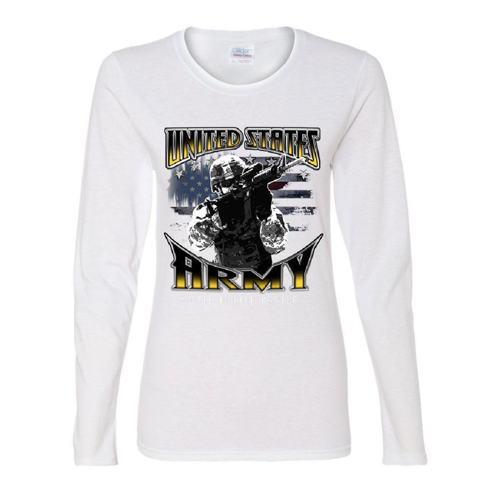 UNITED STATES ARMY FULL BATTLE RATTLE united states army women's long sleeve tee american soldier full battle rattle white