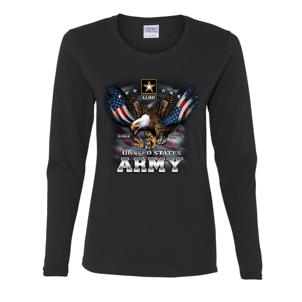 UNITED STATES ARMY BLAD EAGLE united states army women's long sleeve tee bald eagle army strong since 1775 usa black