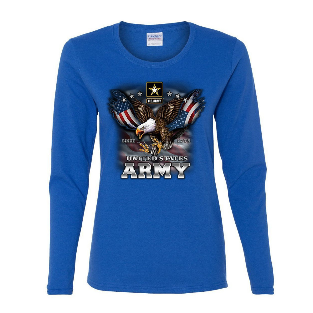UNITED STATES ARMY BLAD EAGLE united states army women's long sleeve tee bald eagle army strong since 1775 usa royal blue