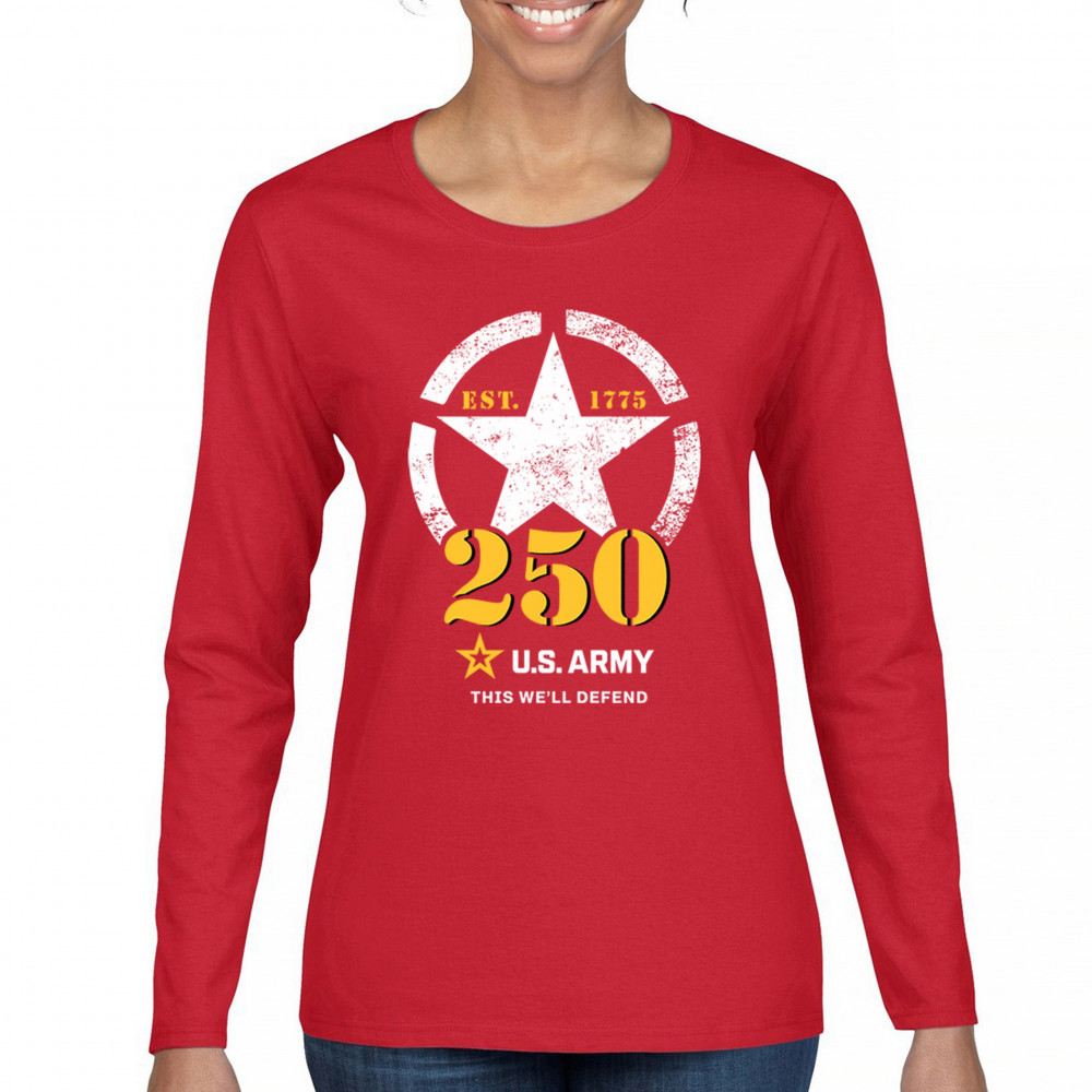 Boldly marking the U.S. Army’s 250th anniversary, this design includes a distressed white star, 1775 EST detail, and bold yellow “250†typeface beneath the iconic motto “This We’ll Defend.†A fitting tribute for veterans, service members, and families who want to show respect and pride during military observances or patriotic events.