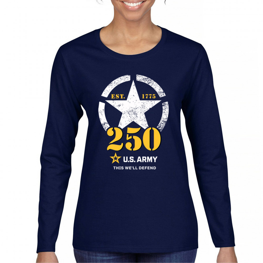 Boldly marking the U.S. Army’s 250th anniversary, this design includes a distressed white star, 1775 EST detail, and bold yellow “250†typeface beneath the iconic motto “This We’ll Defend.†A fitting tribute for veterans, service members, and families who want to show respect and pride during military observances or patriotic events.