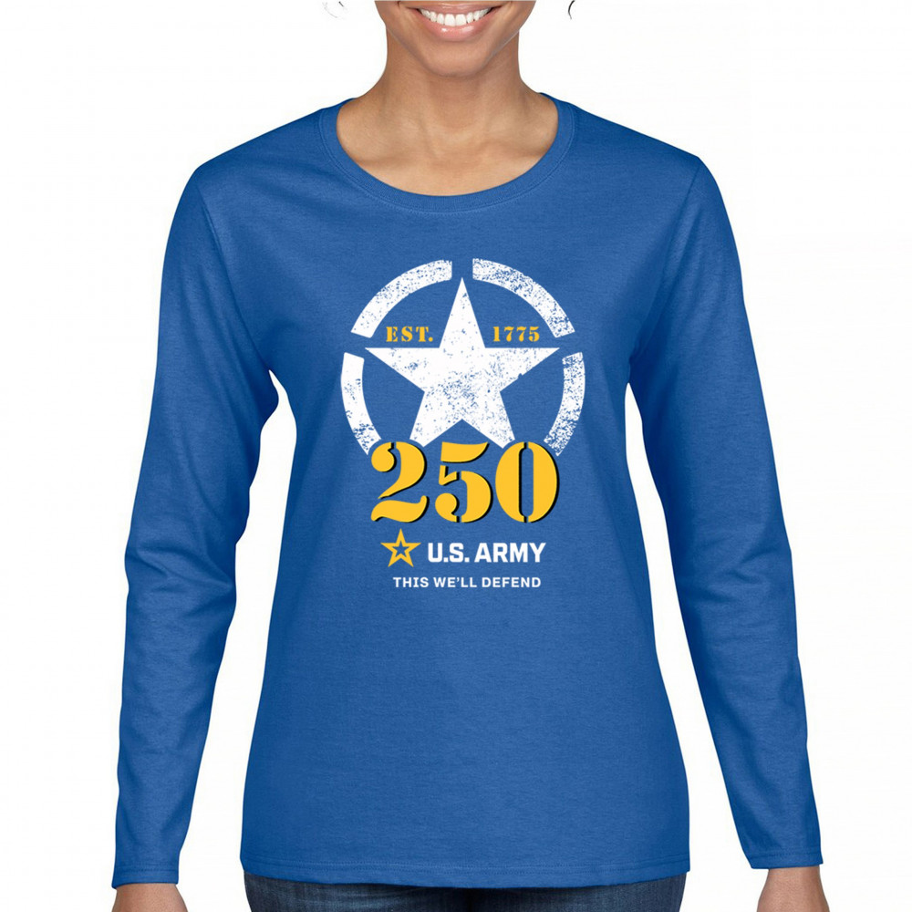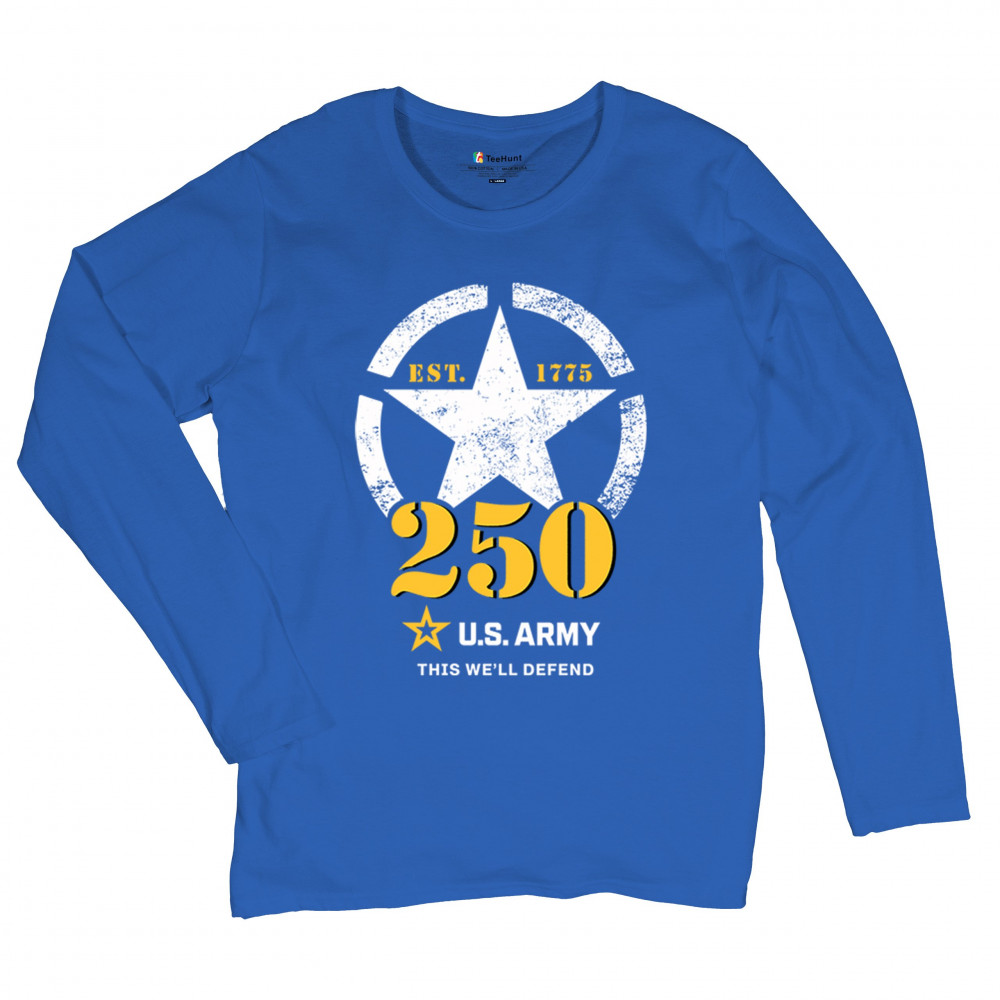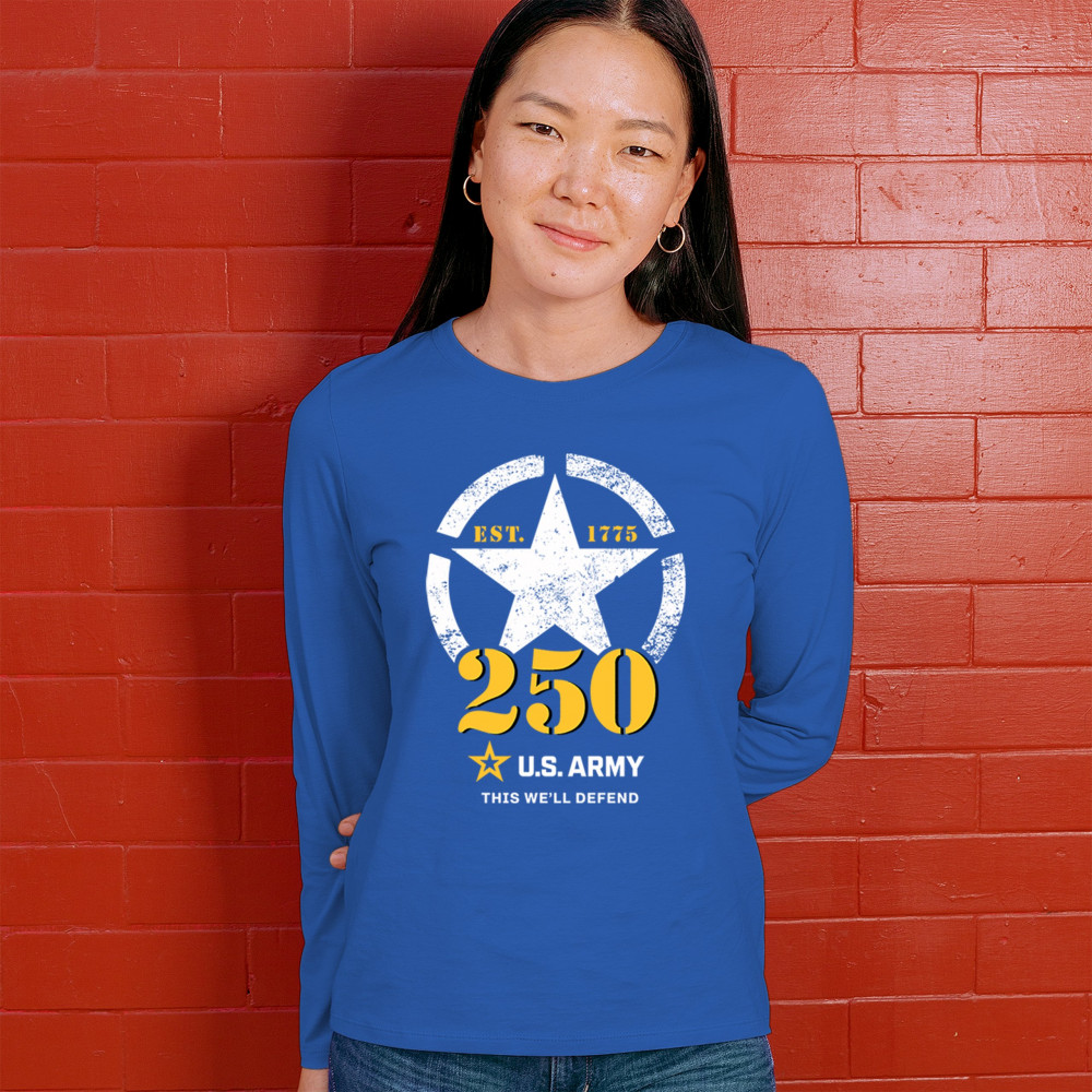 Boldly marking the U.S. Army’s 250th anniversary, this design includes a distressed white star, 1775 EST detail, and bold yellow “250†typeface beneath the iconic motto “This We’ll Defend.†A fitting tribute for veterans, service members, and families who want to show respect and pride during military observances or patriotic events.