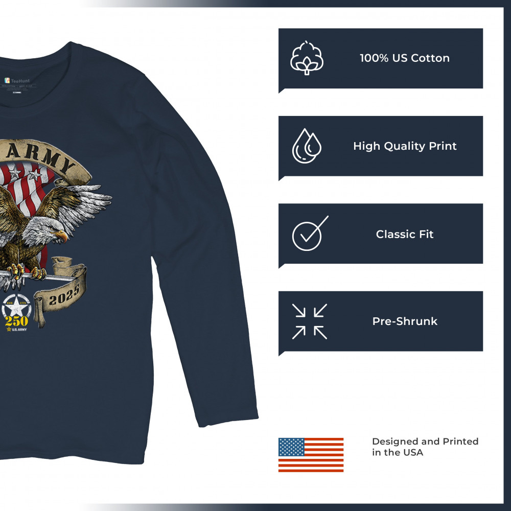 Celebrate the U.S. Army’s 250th Anniversary with patriotic eagle art, Army apparel, Veterans Day pride, and American freedom tribute.