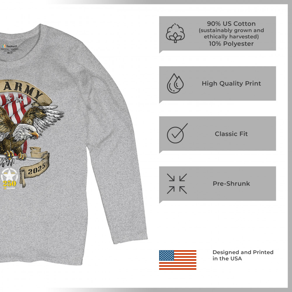 Celebrate the U.S. Army’s 250th Anniversary with patriotic eagle art, Army apparel, Veterans Day pride, and American freedom tribute.