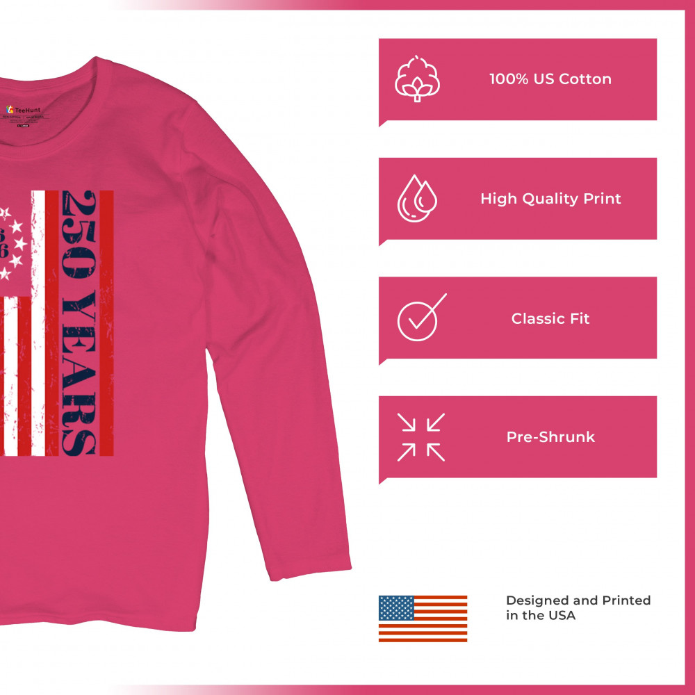 Celebrate USA 250 with patriotic flag shirt, America heritage 250, 1776–2026 milestone, American pride, and Independence Day freedom.