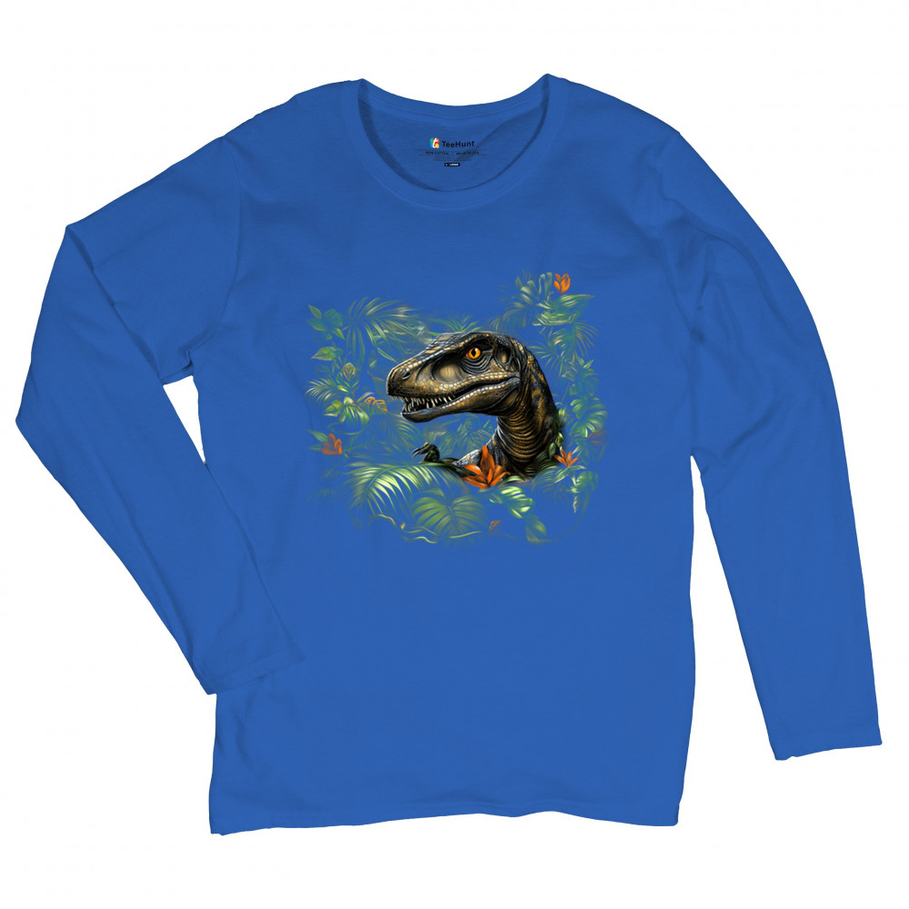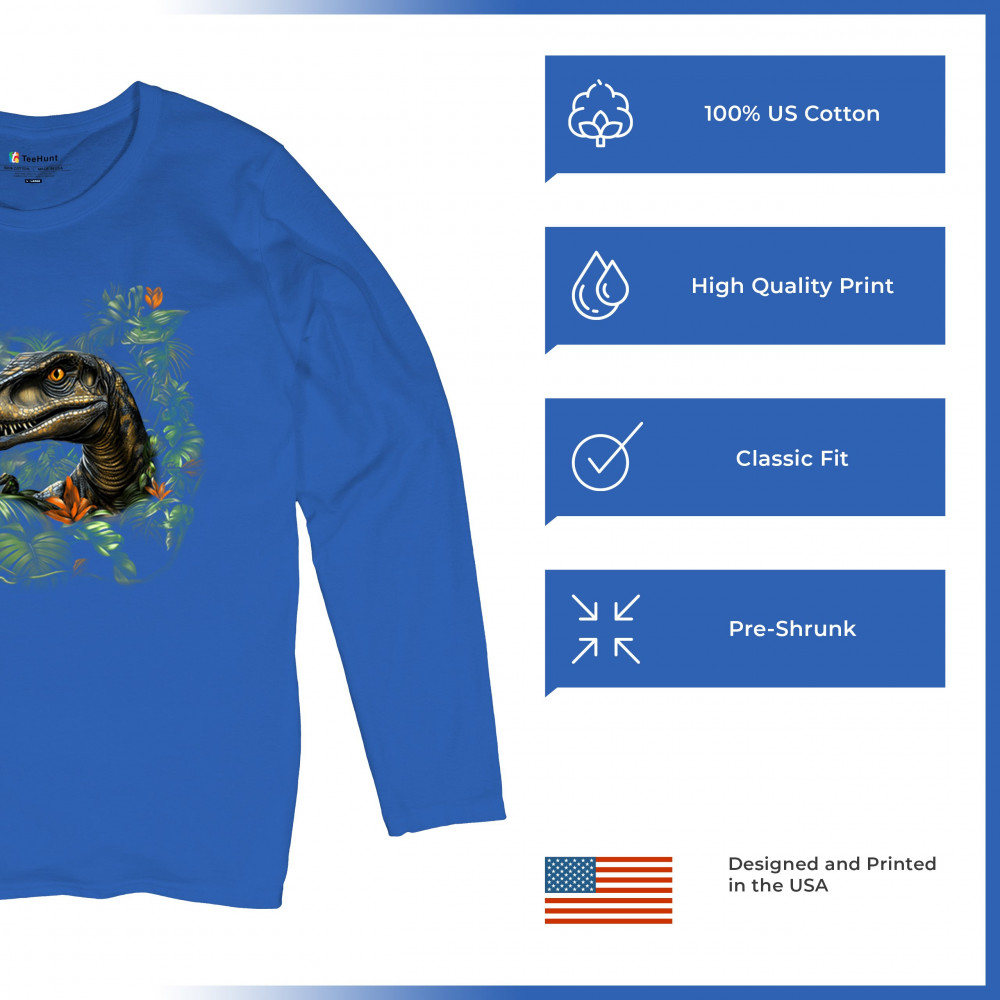 Step into the wild with this striking jungle raptor design. A highly detailed velociraptor peeks from vivid tropical foliage and flowers, perfect for dinosaur lovers, fossil fans, and ancient creature enthusiasts. Whether for Jurassic adventures, museum trips, or themed events, this design unleashes untamed prehistoric energy.