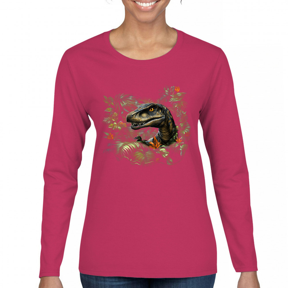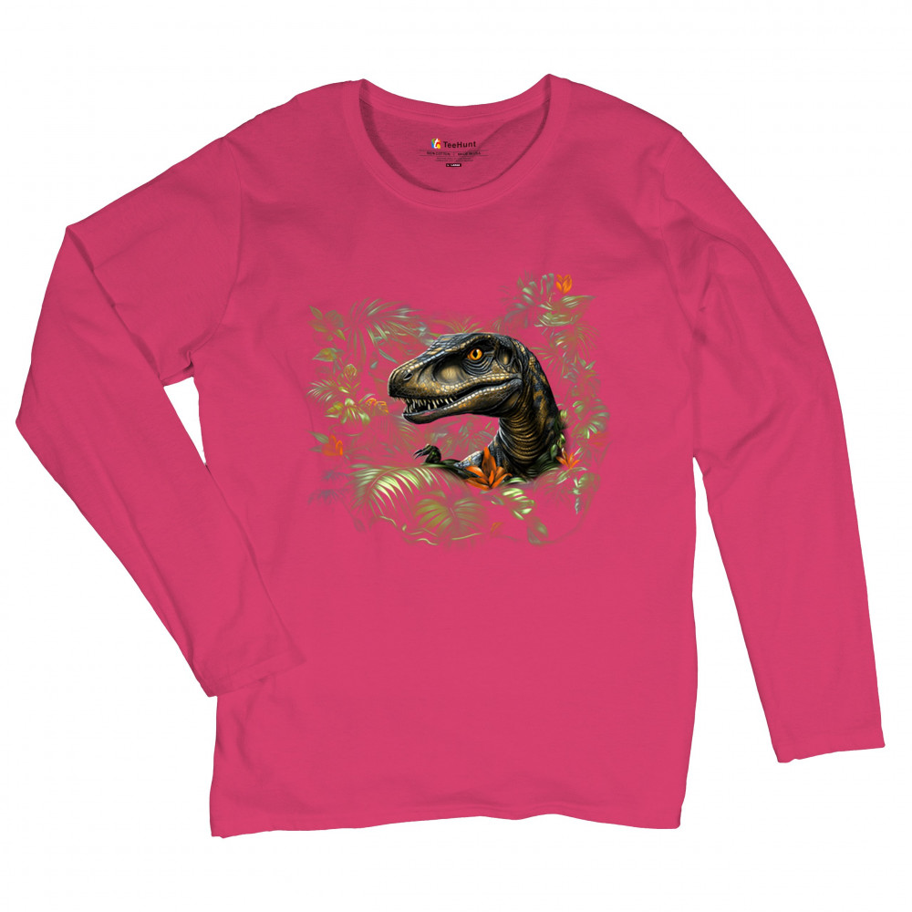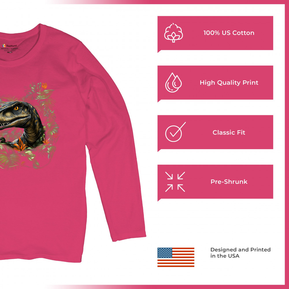 Step into the wild with this striking jungle raptor design. A highly detailed velociraptor peeks from vivid tropical foliage and flowers, perfect for dinosaur lovers, fossil fans, and ancient creature enthusiasts. Whether for Jurassic adventures, museum trips, or themed events, this design unleashes untamed prehistoric energy.