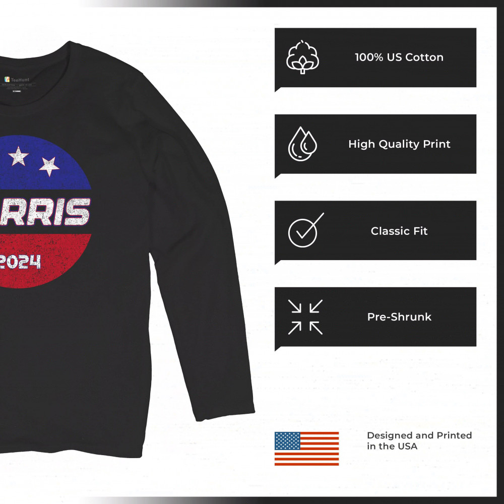 Embrace your political stance with this Kamala Harris 2024 design, crafted for supporters of the Democratic party and those who believe in a brighter, inclusive future. The design features the American flag and bold lettering, making it a perfect choice for rallies, political events, or casual wear. It underscores the historic significance of electing the first female president and represents a broad coalition of black Americans, Hispanic Americans, LGBTQ, and other minority groups. Stand out and show your unwavering support for Kamala Harris and her vision for America.
