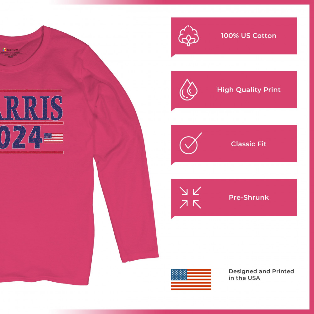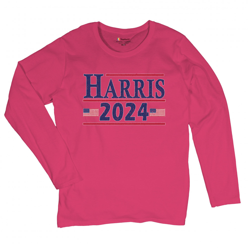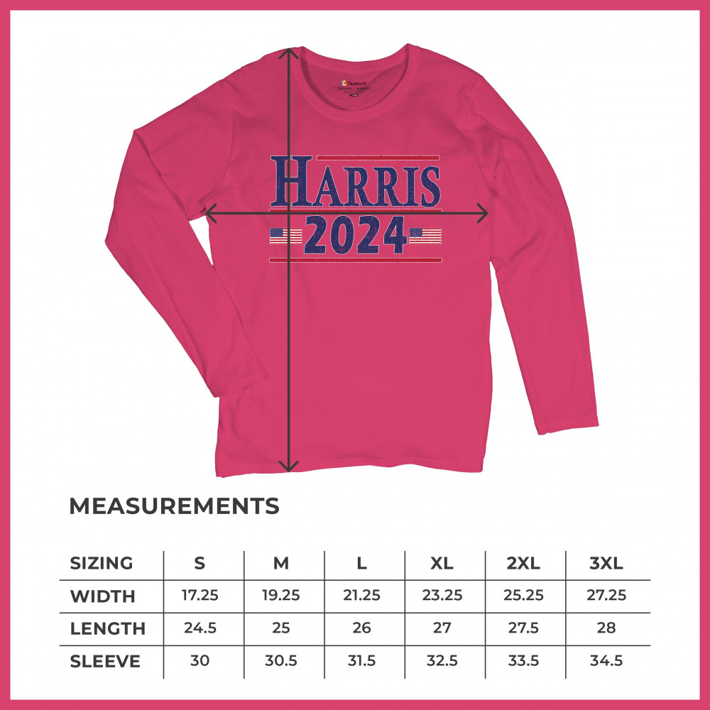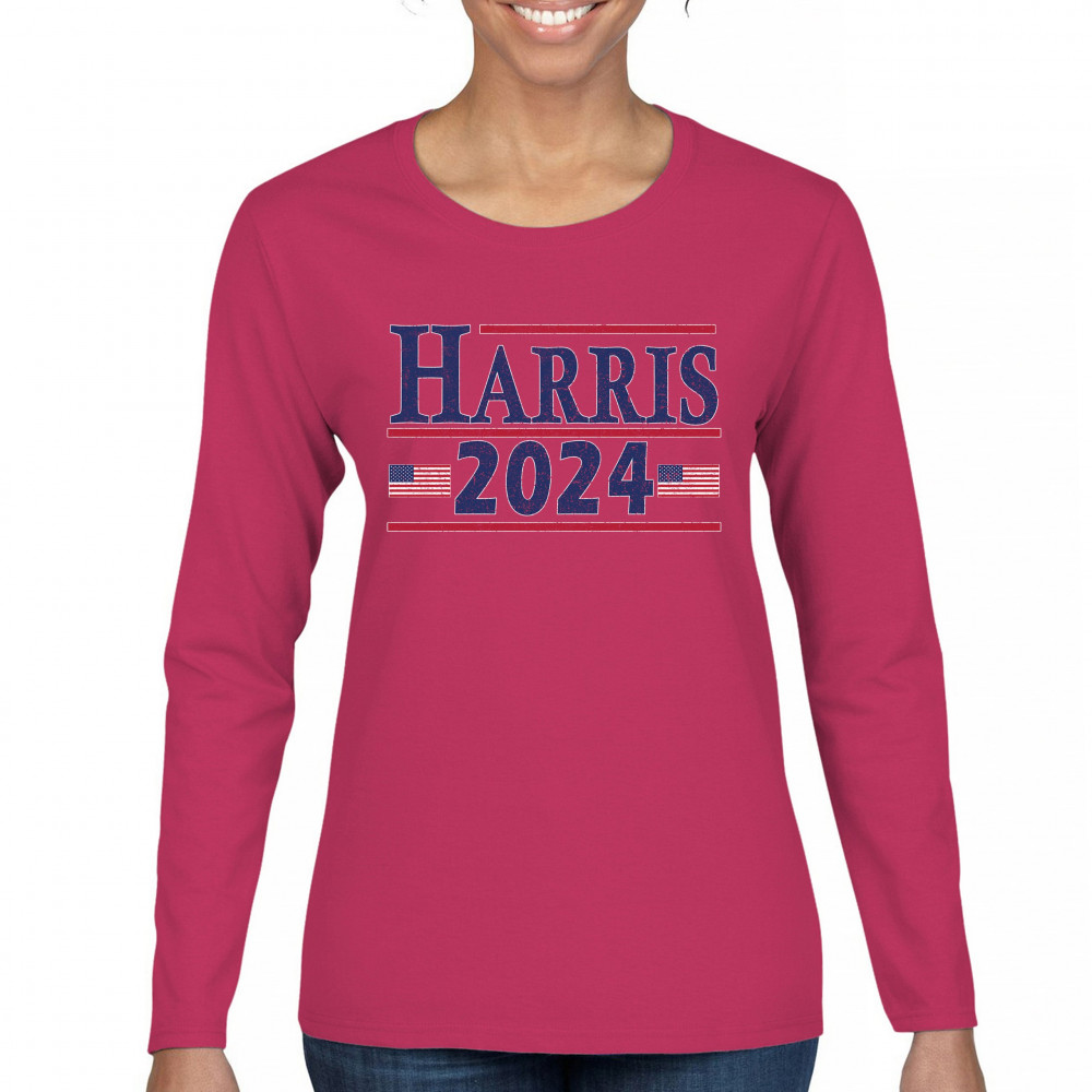 Show your support for Kamala Harris with this bold "Harris 2024" t-shirt, featuring American flags. Perfect for rallies and events. Join the movement today!