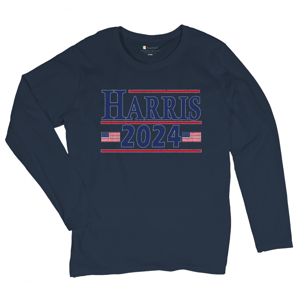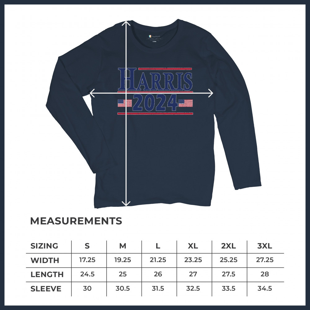 Show your support for Kamala Harris with this bold "Harris 2024" t-shirt, featuring American flags. Perfect for rallies and events. Join the movement today!