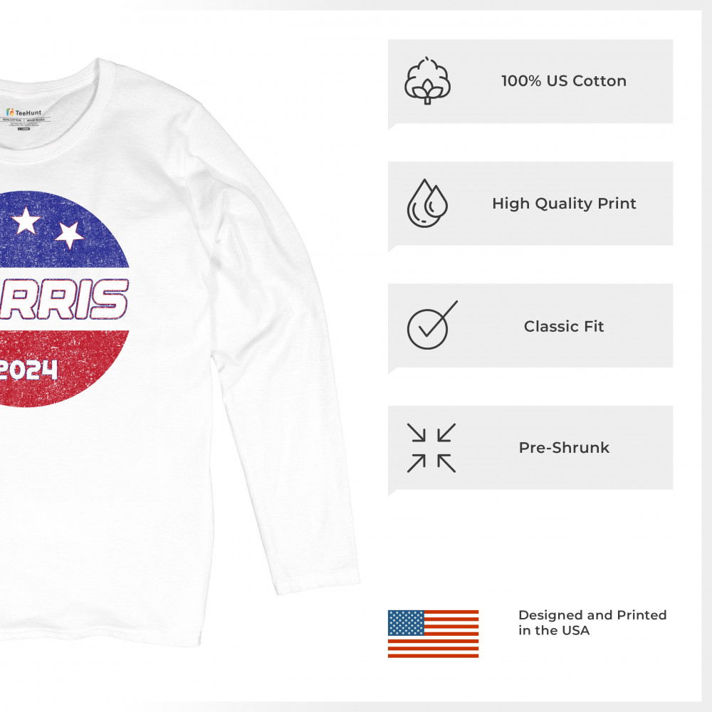 Embrace your political stance with this Kamala Harris 2024 design, crafted for supporters of the Democratic party and those who believe in a brighter, inclusive future. The design features the American flag and bold lettering, making it a perfect choice for rallies, political events, or casual wear. It underscores the historic significance of electing the first female president and represents a broad coalition of black Americans, Hispanic Americans, LGBTQ, and other minority groups. Stand out and show your unwavering support for Kamala Harris and her vision for America.