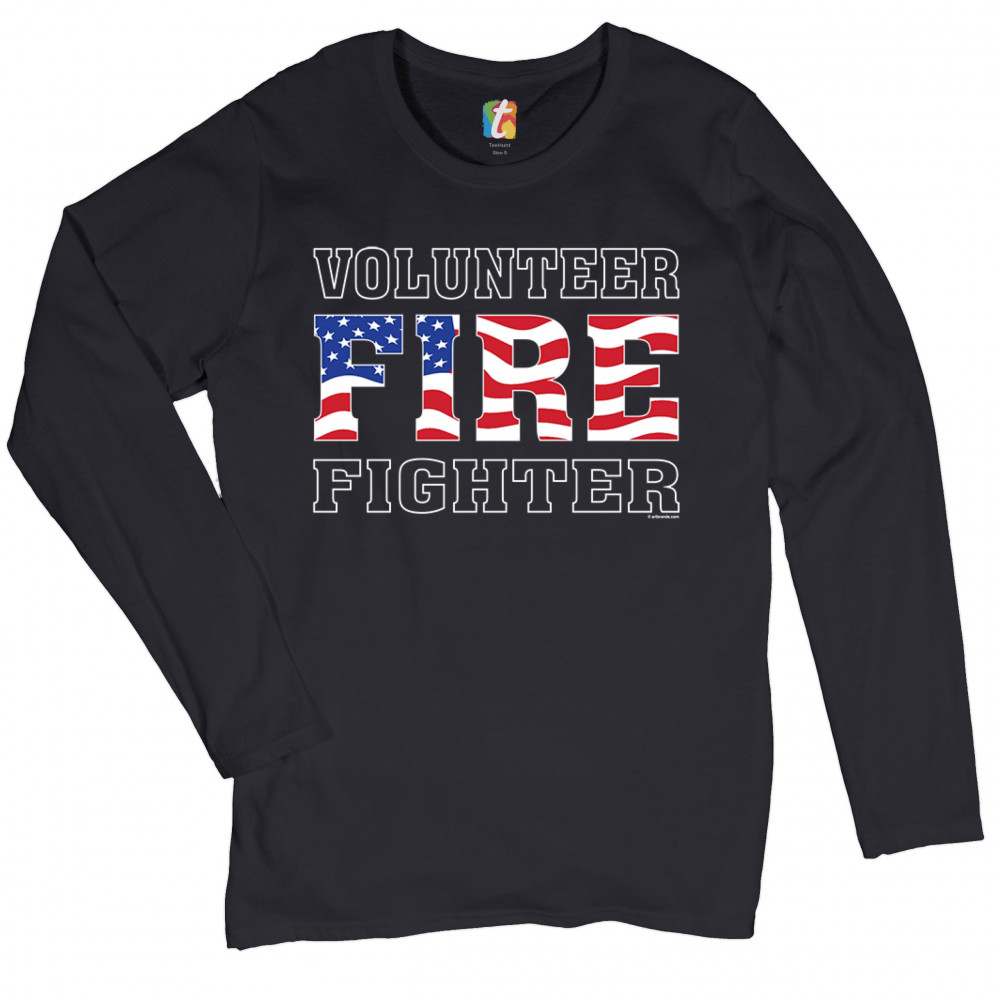 VOLUNTEER FIRE FIGHTER women's long sleeve t-shirt fire and rescue patriotic black