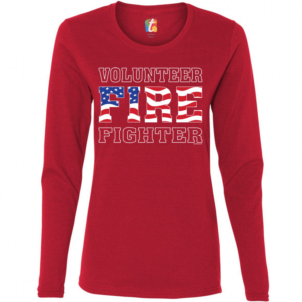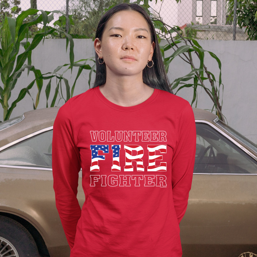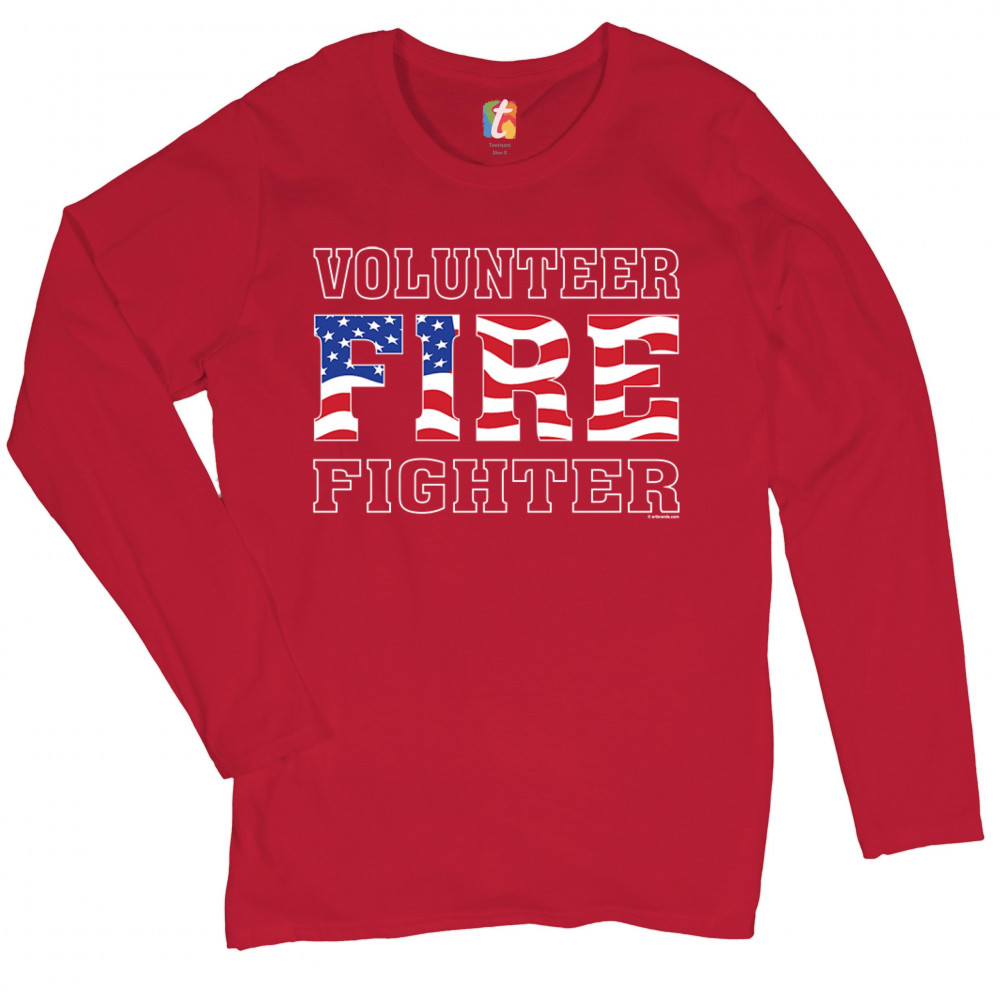VOLUNTEER FIRE FIGHTER women's long sleeve t-shirt fire and rescue patriotic red