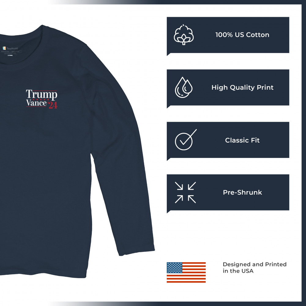 Support the unstoppable Trump and Vance 2024 campaign with this minimalist yet impactful t-shirt. Perfect for conservatives and Trump supporters, this shirt embodies the values of victory, patriotism, and faith in a better future. Whether you're attending a rally or making a statement in your daily life, wear this shirt with pride and confidence, knowing you're part of a movement that puts America first. Embrace your support and show where you stand.