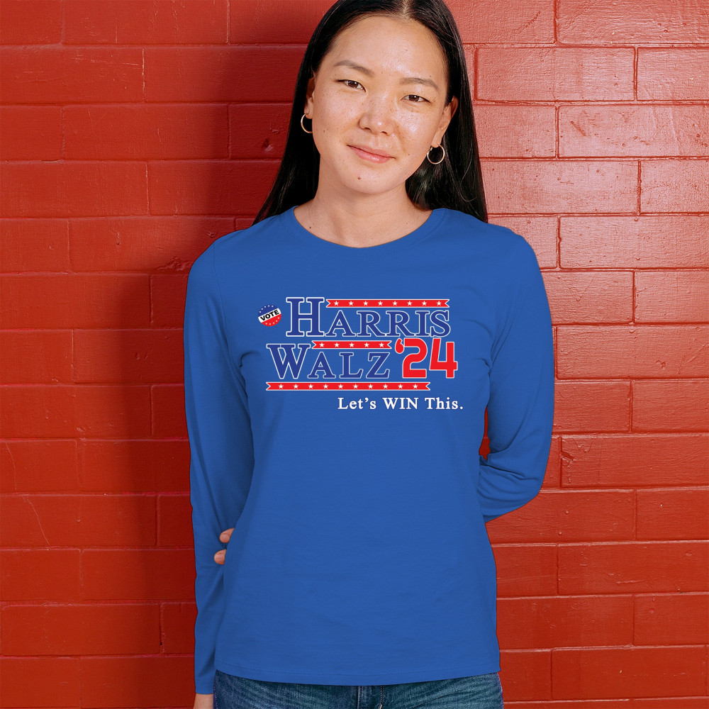 Express your support for Kamala Harris and Tim Walz in the 2024 election with this dynamic and patriotic design. Perfect for rally participants, dedicated supporters, and advocates of liberal values, this design captures the essence of the campaign. Highlighting America First, women's rights, and LGBTQ+ equality, it symbolizes the fight for victory and justice. Trust in government and join the rebelution against conservative agendas. Stand with Kamala and Walz for a brighter future. Let's win this together in 2024. Let's Win This.