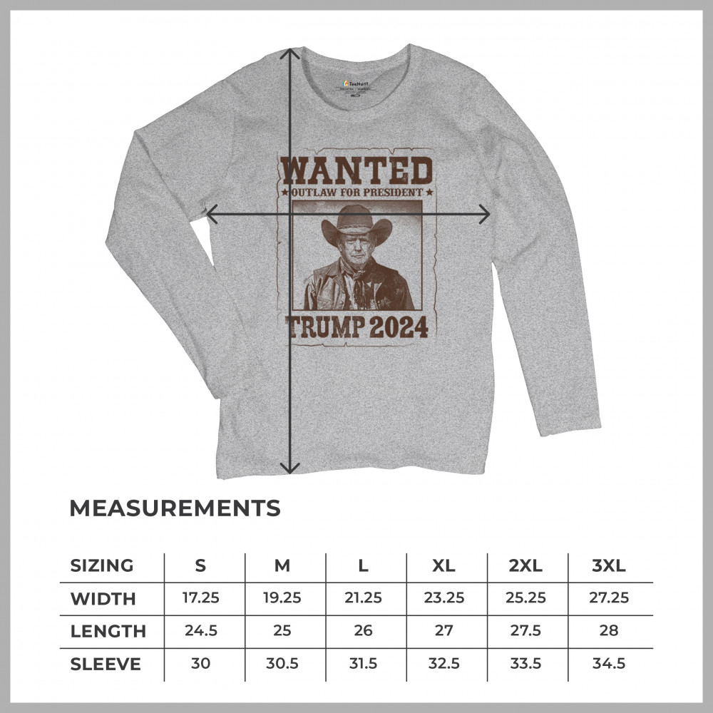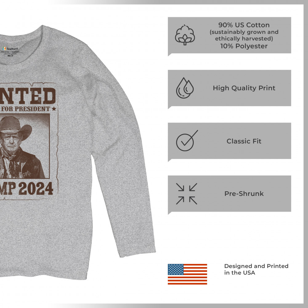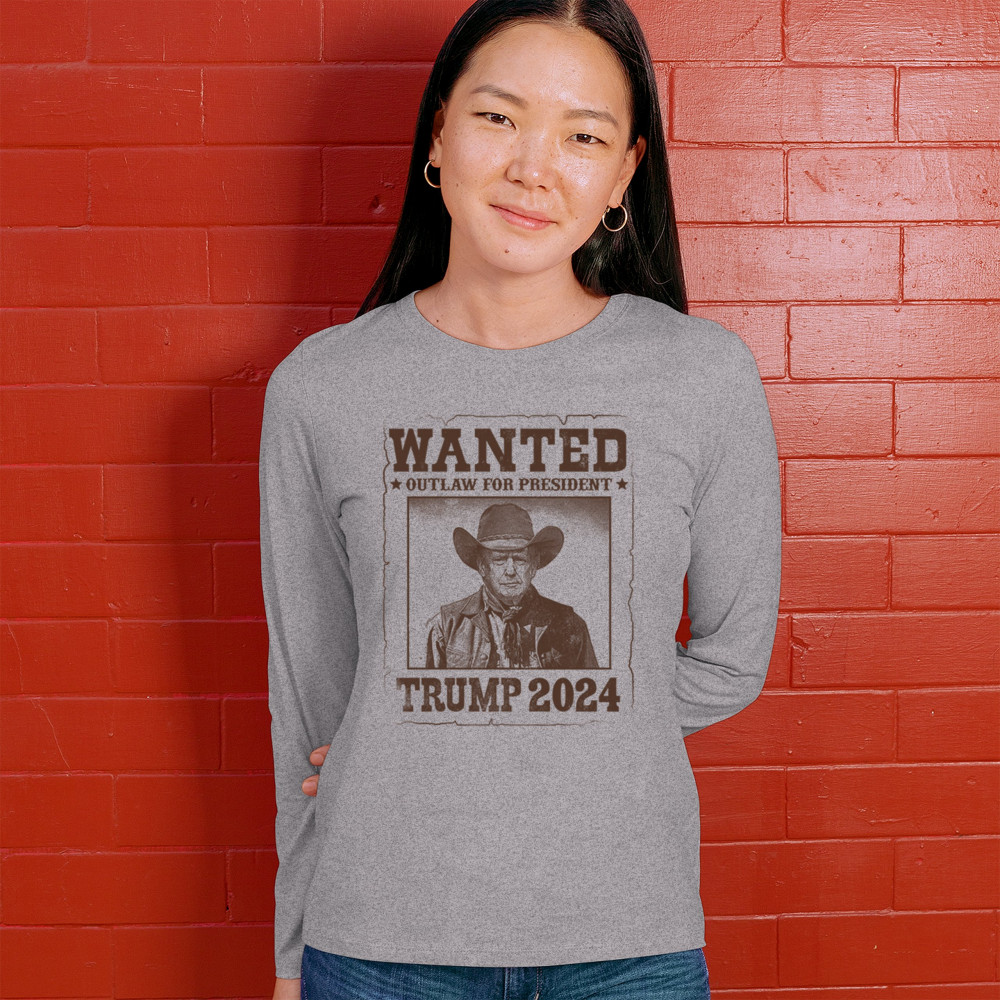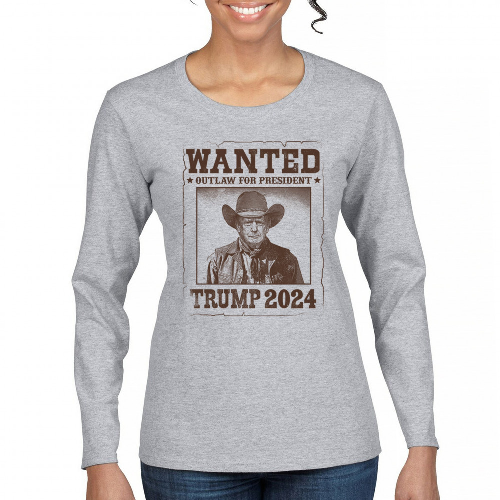 WANTED TRUMP 2024 women's long sleeve t-shirt outlaw for president 47 maga usa gray