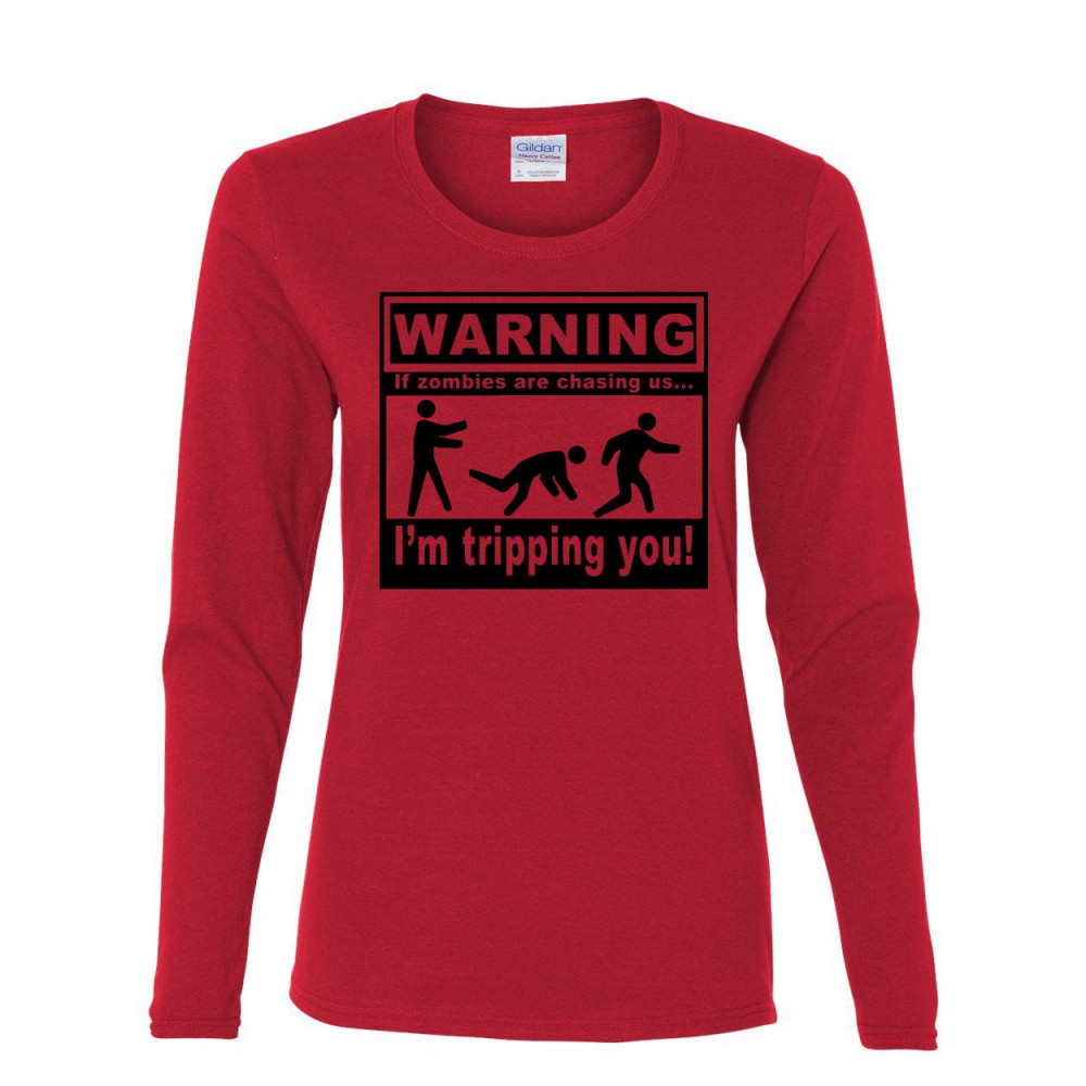 IF ZOMBIES ARE CHASING US I'M TRIPPING YOU long sleeve t-shirt red