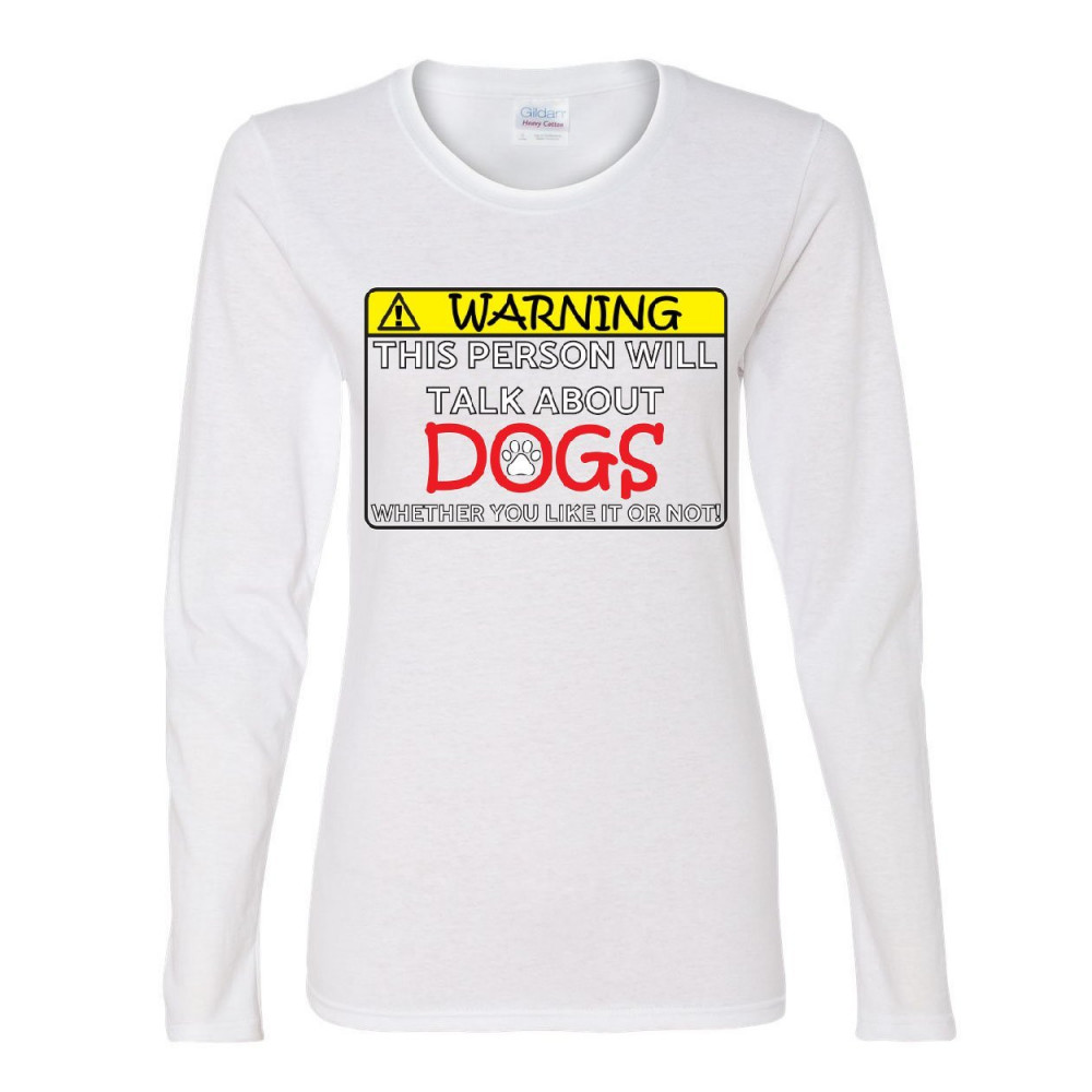 WARNING! THIS PERSON WILL TALK ABOUT DOGS women's long sleeve tee puppy pet paw white